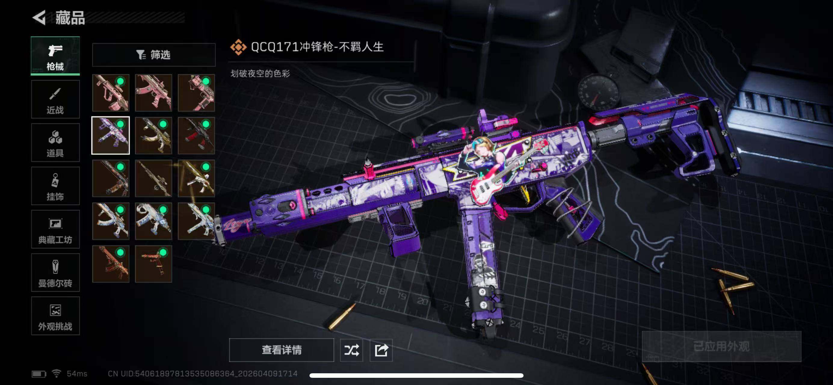 【传说外观】:AKM突击步枪-锦绣,K416突击步枪-行动记录,AUG突击步枪-悠然茶歇,腾龙突击步枪-马年祥瑞,K437突击步枪-锦绣,MK47突击步枪-悠然茶歇,MK47突击步枪-暗星,UZI冲锋枪-悠然茶歇,SMG-45冲锋枪-锦