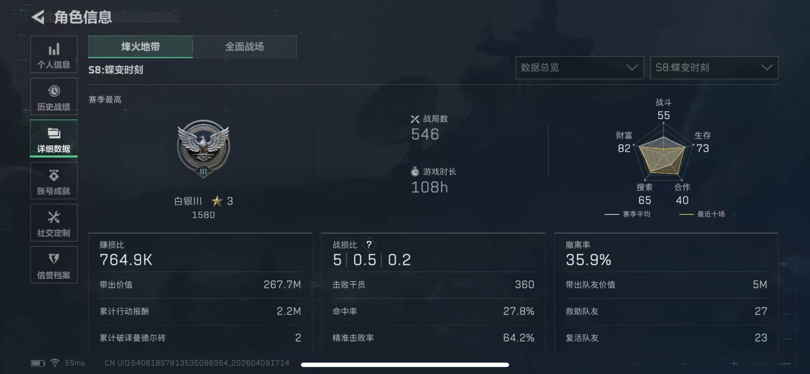 【SJ1715】142m总资产-30072k哈夫币-60烽火等级-白银-10战