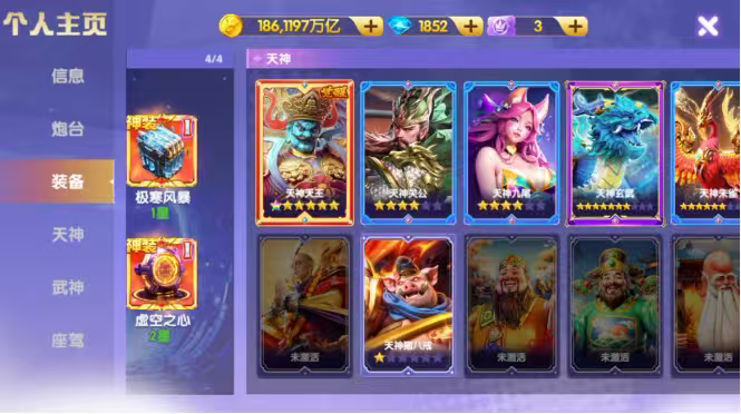 小米买断,1.5万炮 8⭐️神电 全神装 3级洪荒 1⭐️觉醒天王 4⭐️关羽狐狸 35级武神