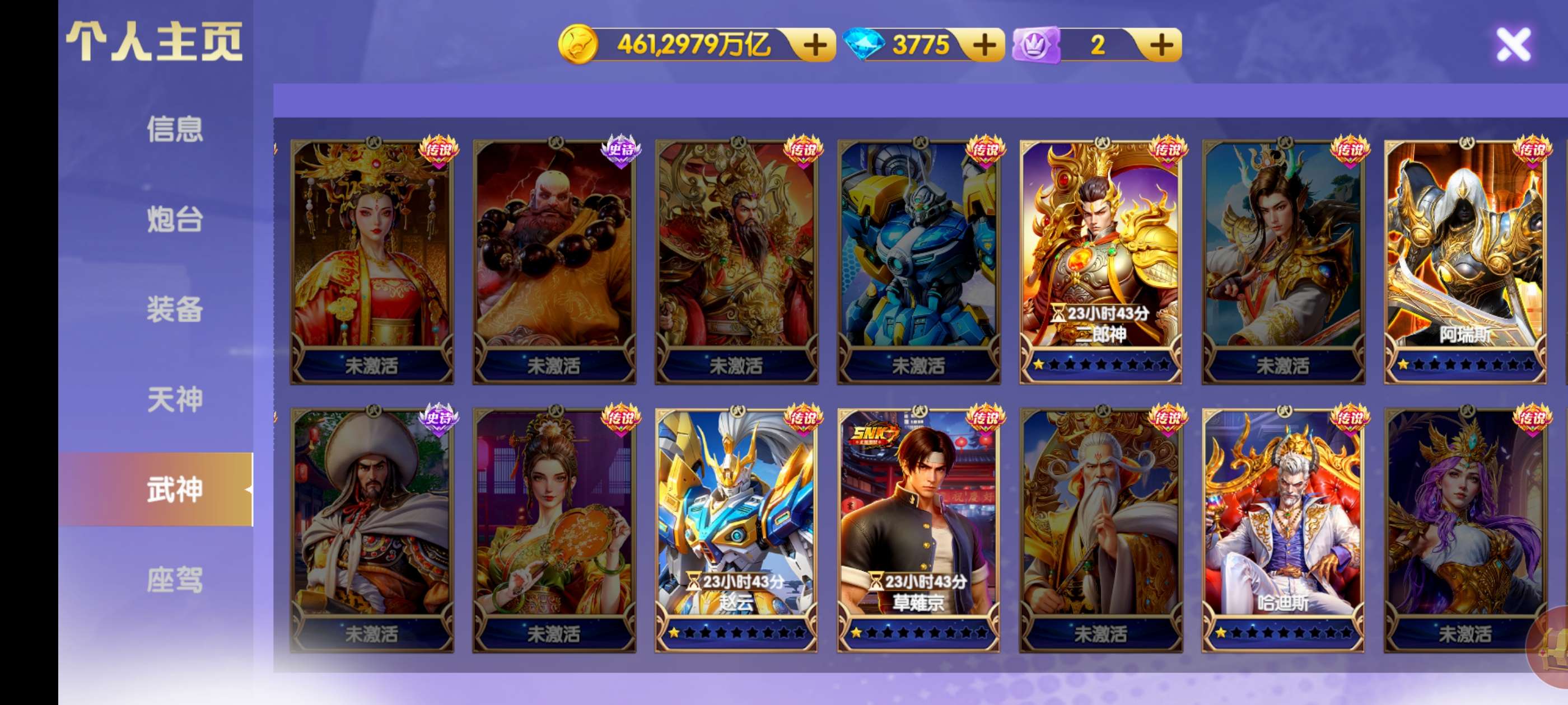 461兆,2.5万炮神装21连击,天王觉醒,洪荒限时5级西游羁绊,10武神连击1200,1.5万炸弹