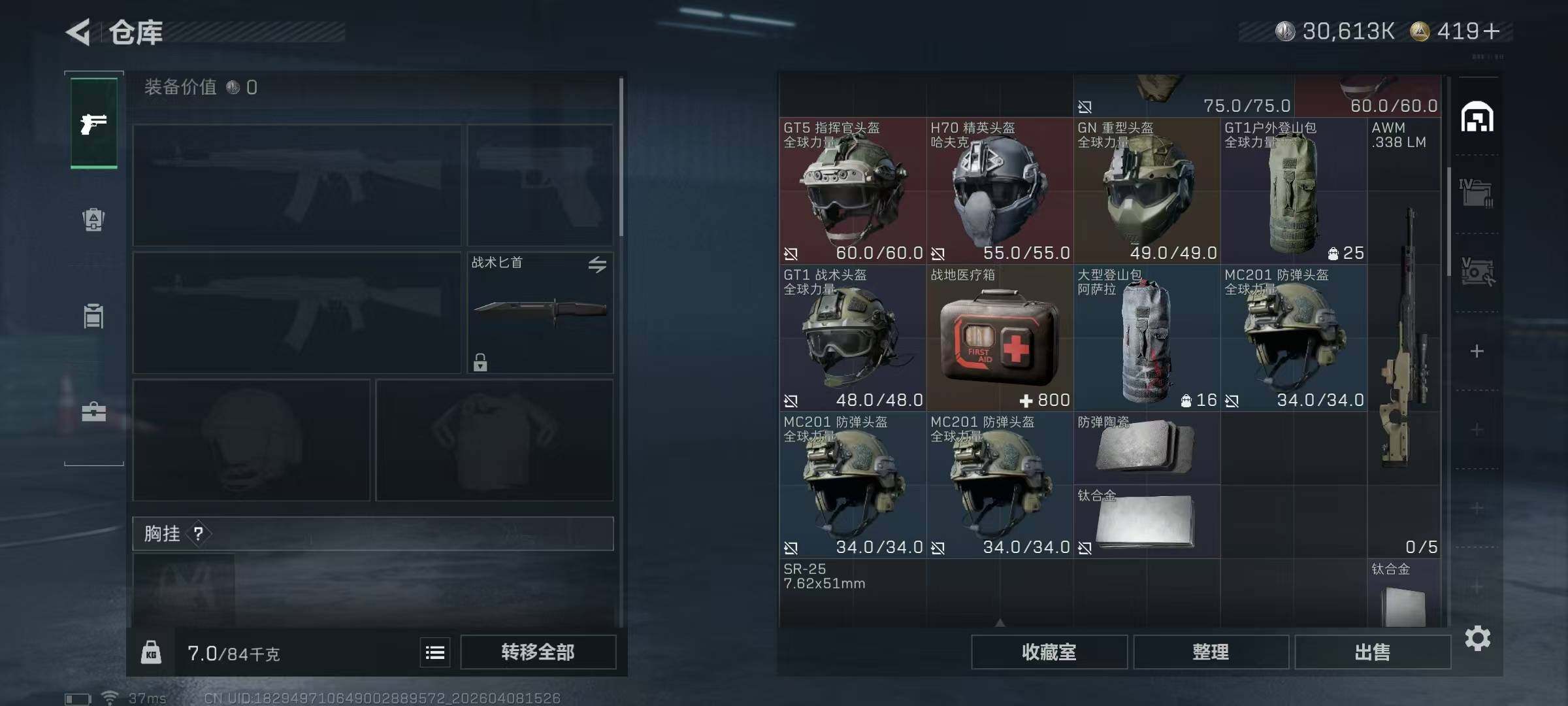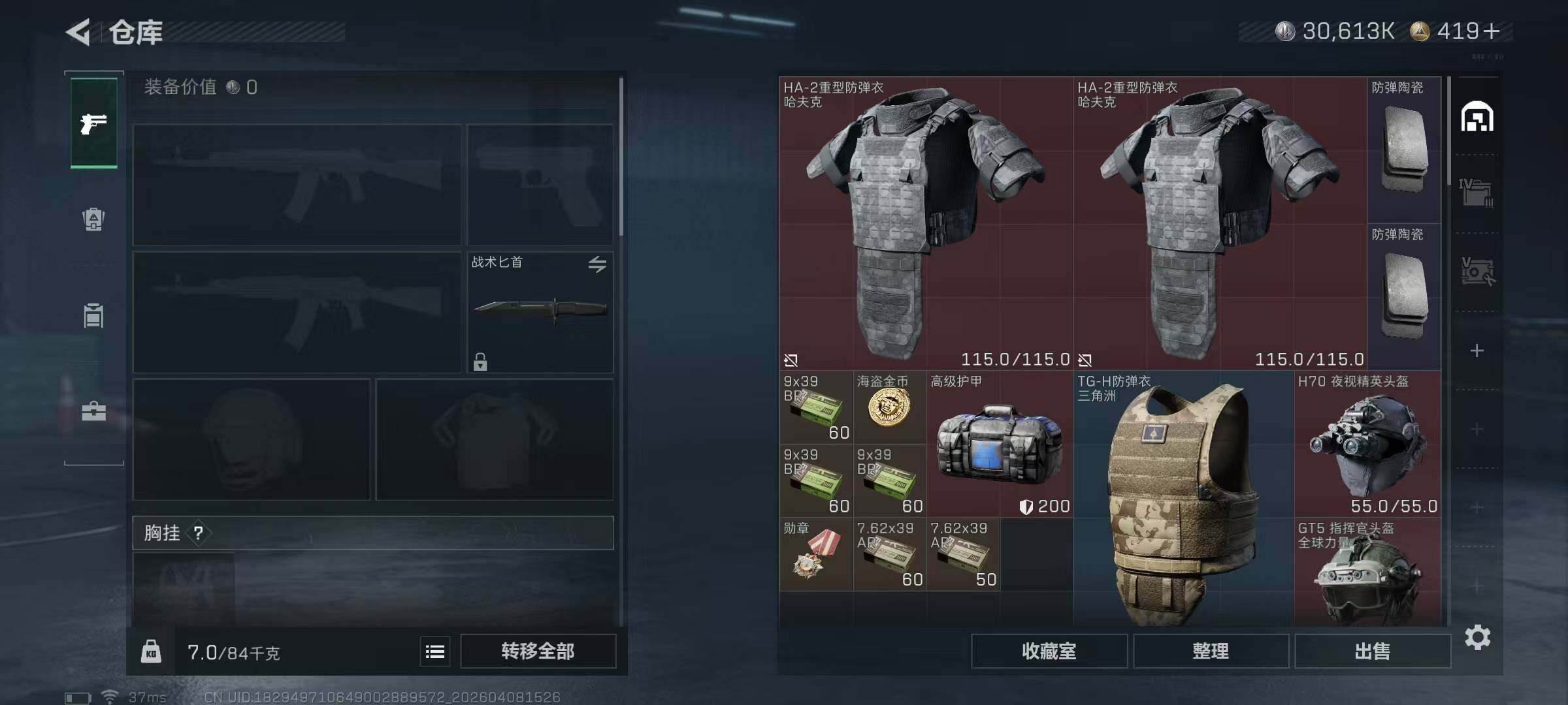 135m总资产-30613k哈夫币-60烽火等级-三角洲巅峰-4战场等级-无军