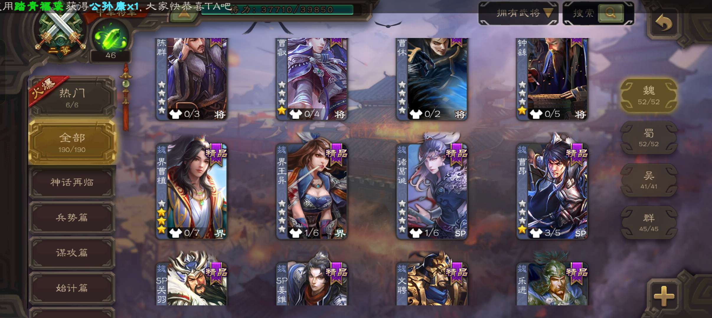 史诗武将数量: