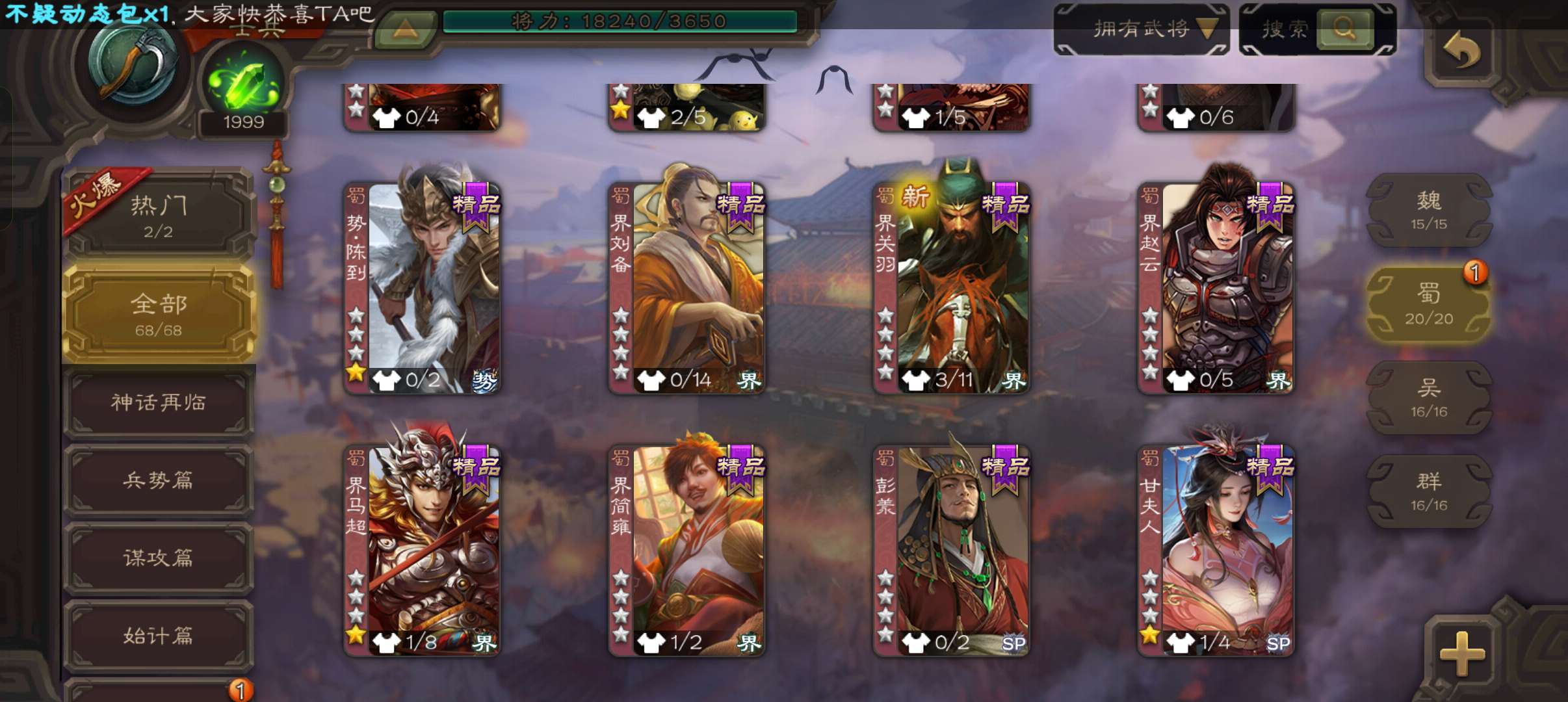 68将超级兵,2千将魂163招募令,真动态界左慈神刘备双史诗,甘夫人势陈到势田丰,4万豆