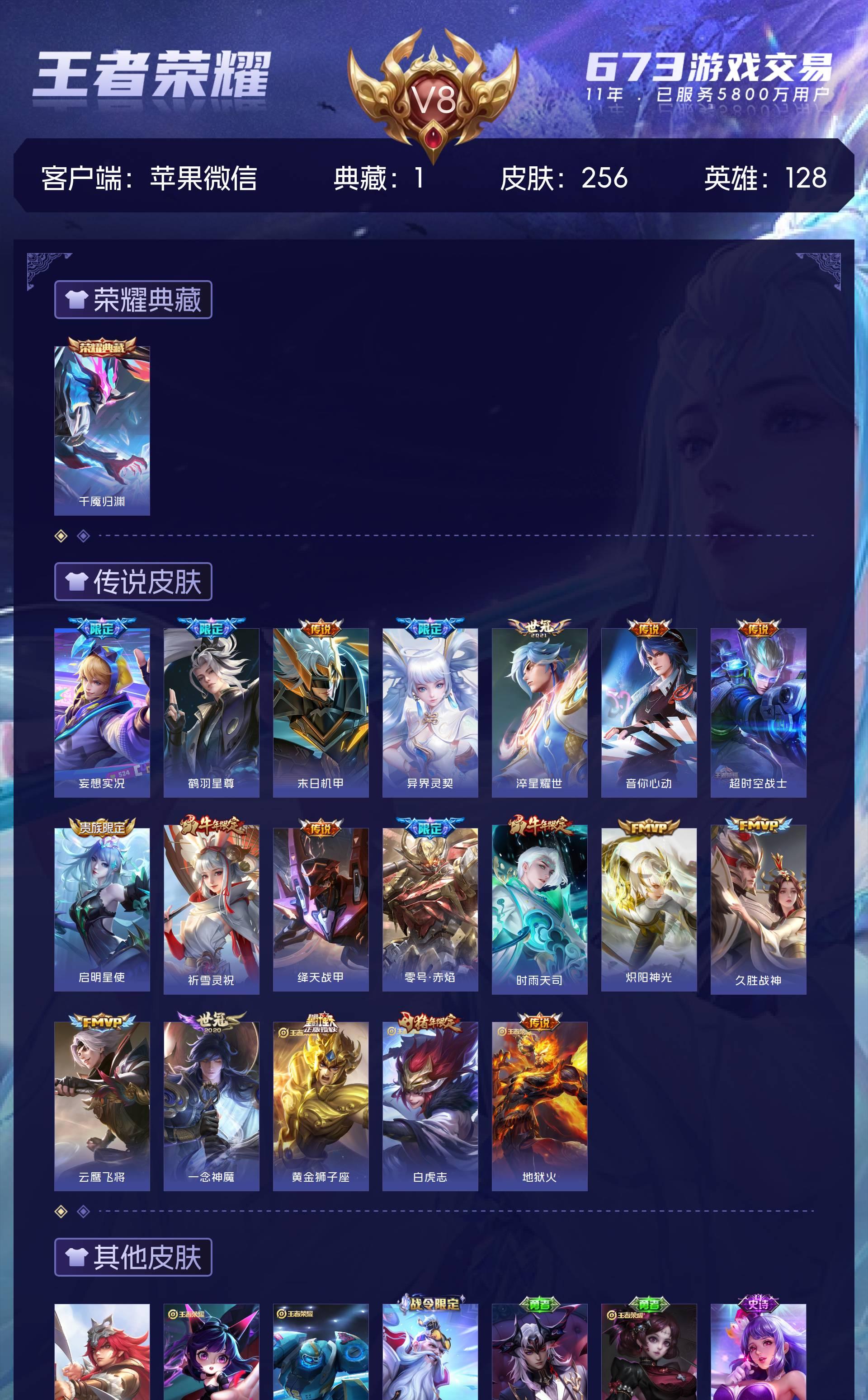 V8 皮肤256 英雄128 永恒钻石 荣耀典藏1 传说19