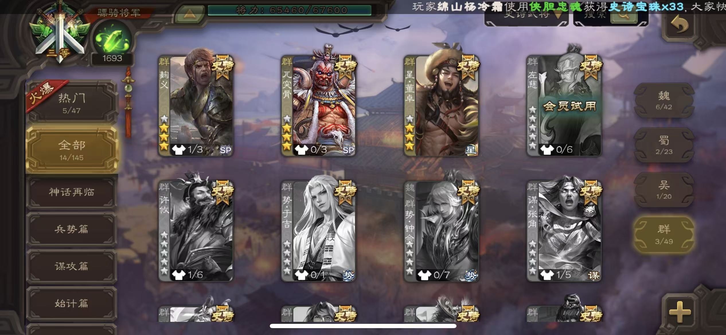 史诗武将数量: