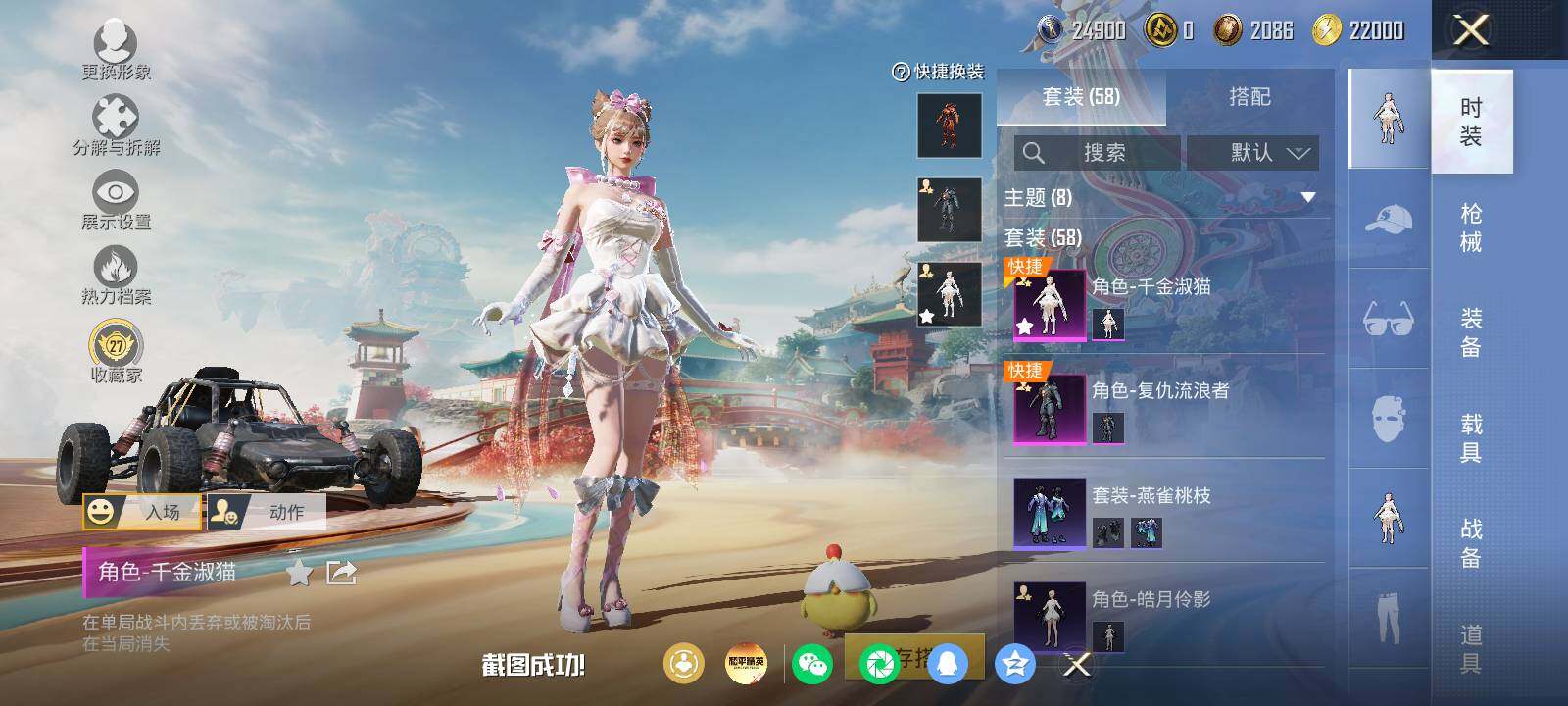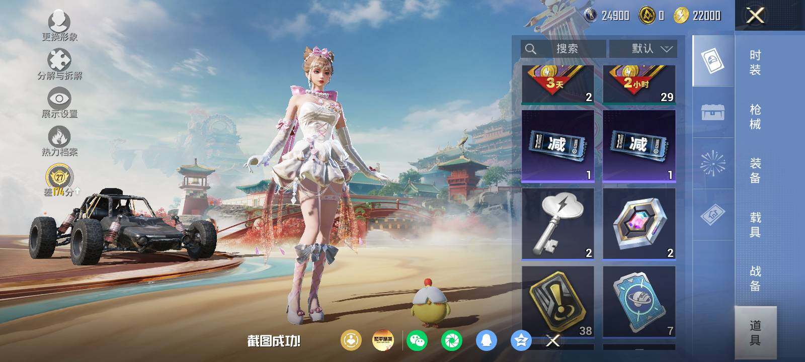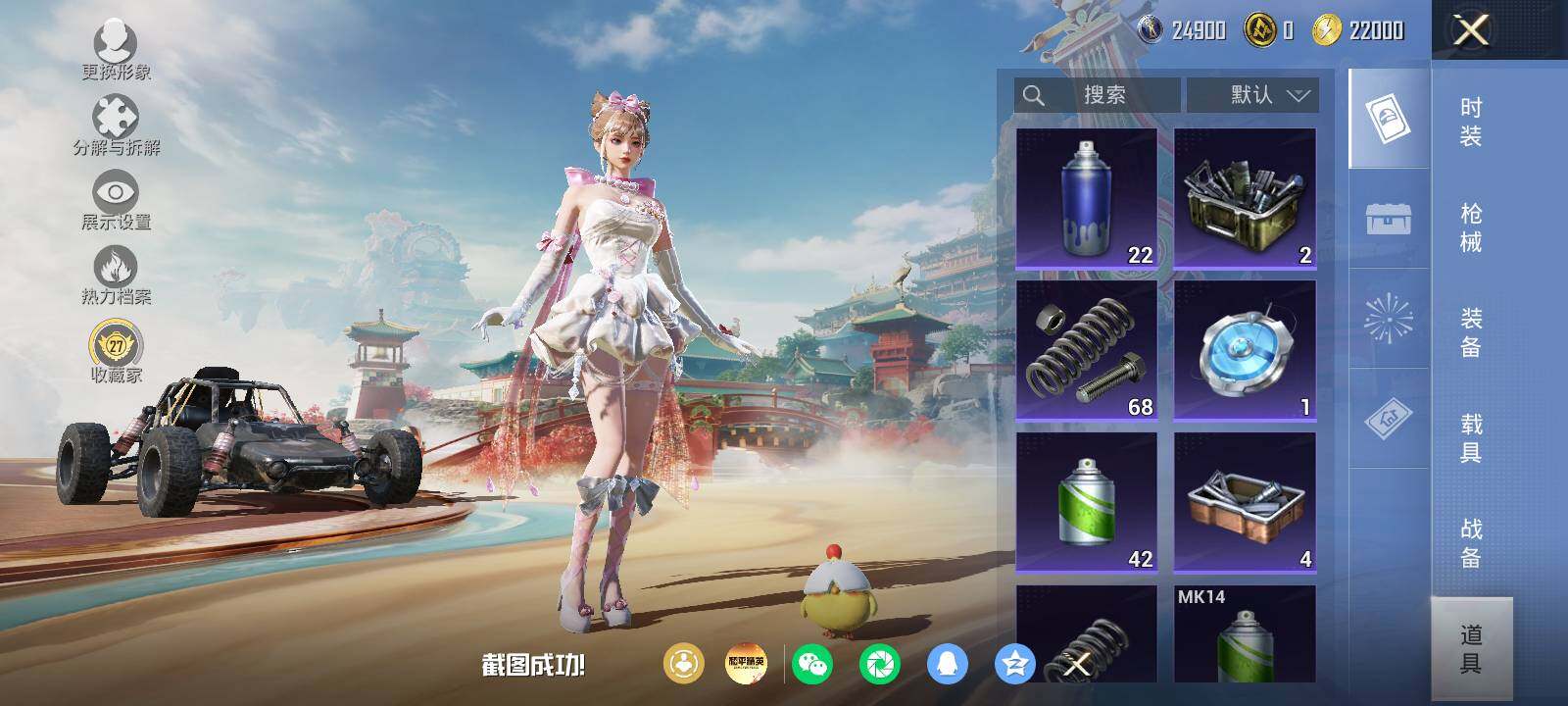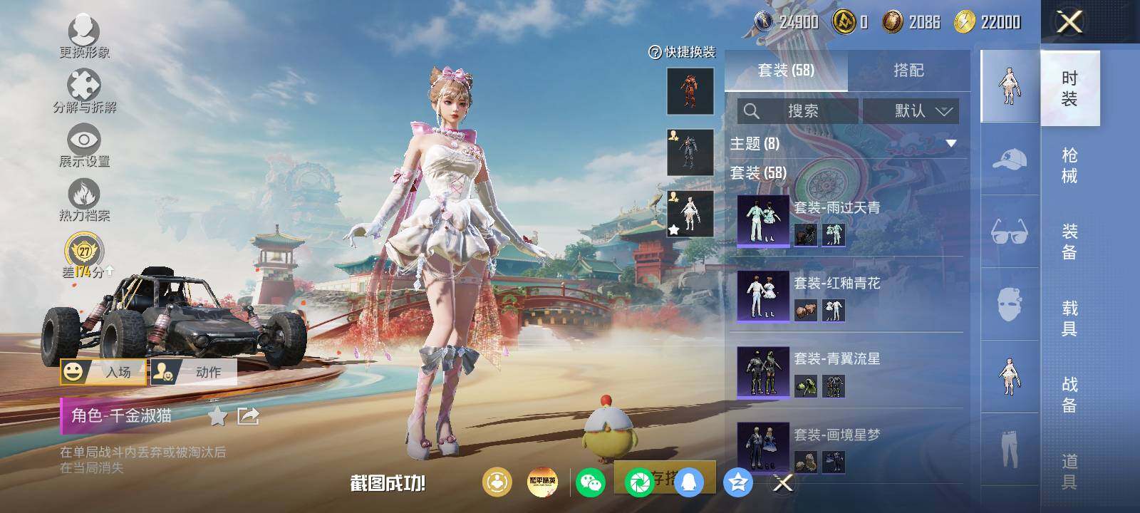 安卓 手Q-2粉装-3特效枪-0载具-0粉色飞行器-18141热力值-1王牌印记-58套装-70枪皮