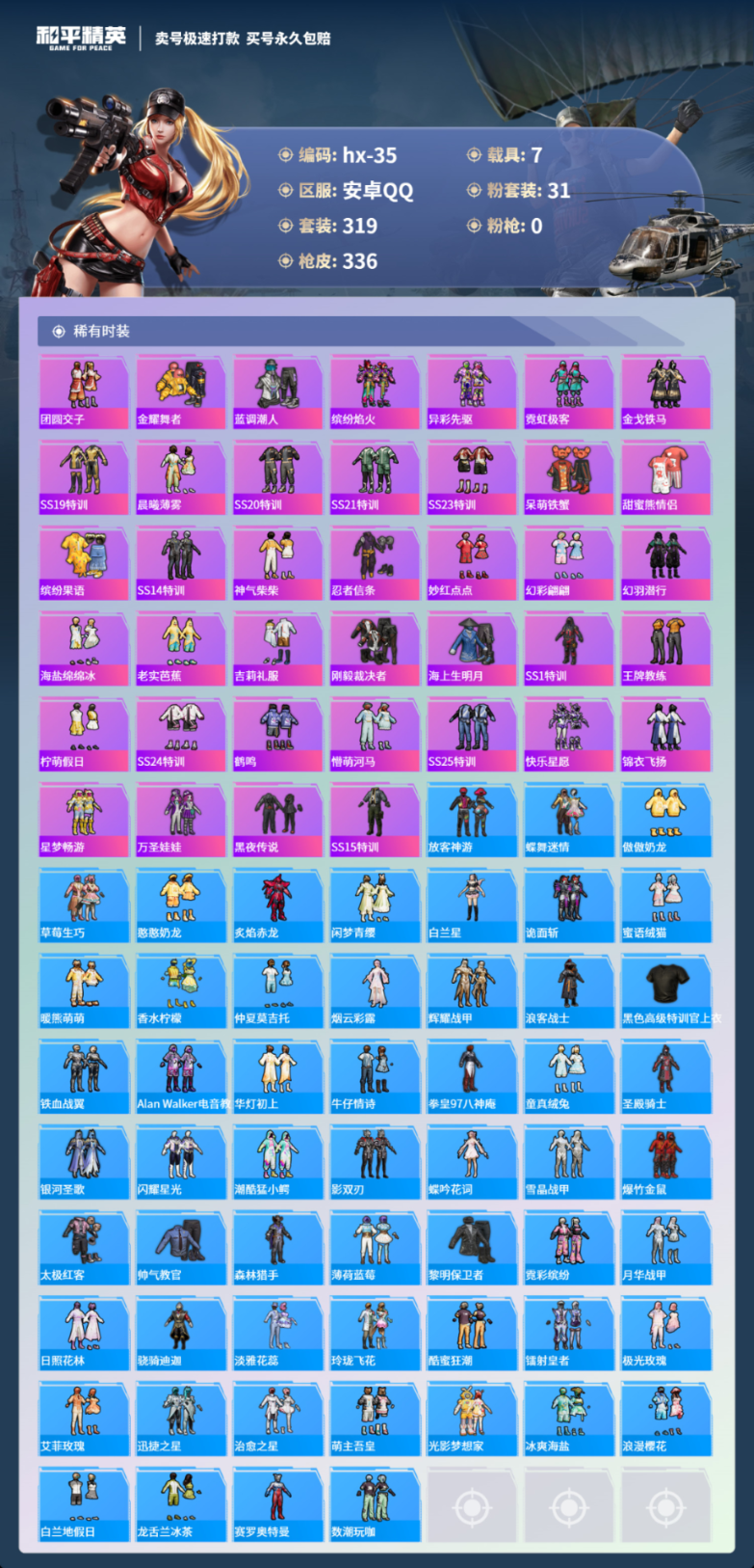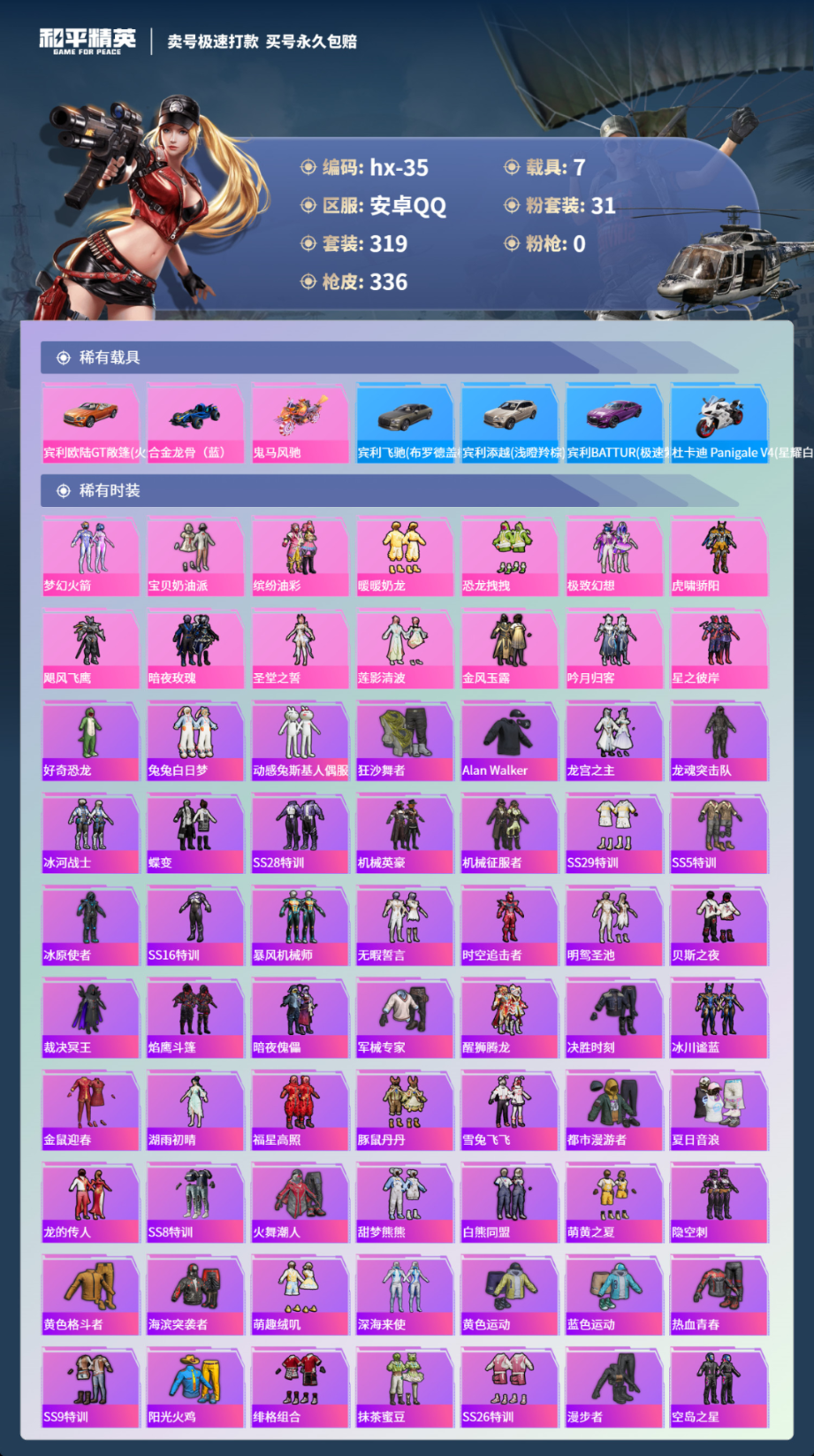 7载具-319套装-336枪皮-安卓 手Q-31粉装-29特效枪-7载具-热力值-18印记-319套装-336枪皮