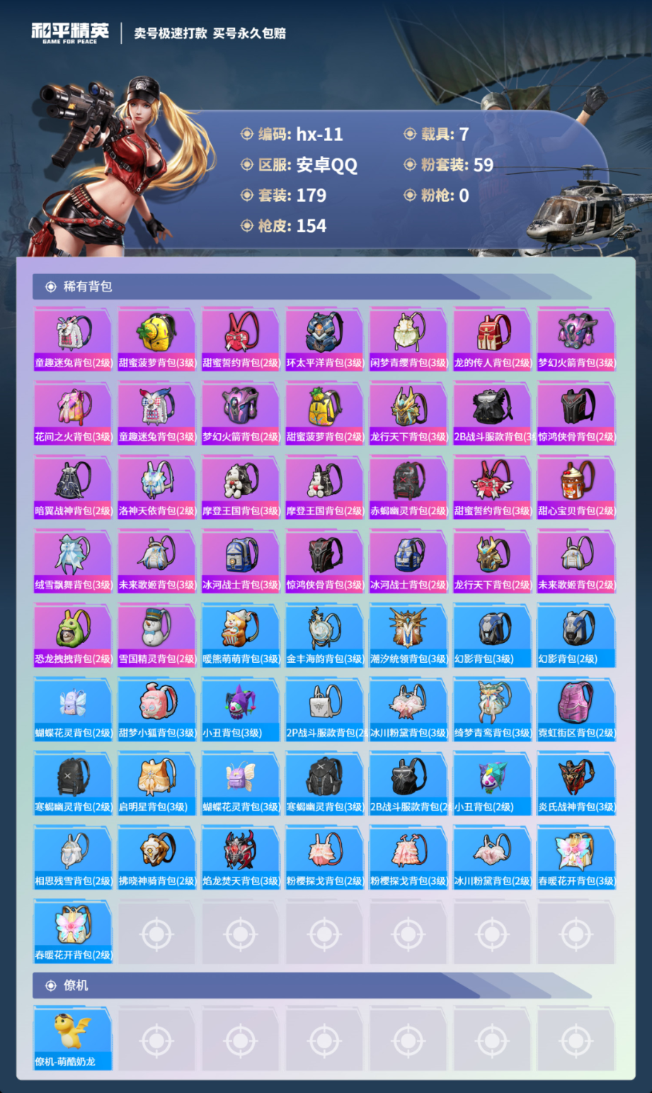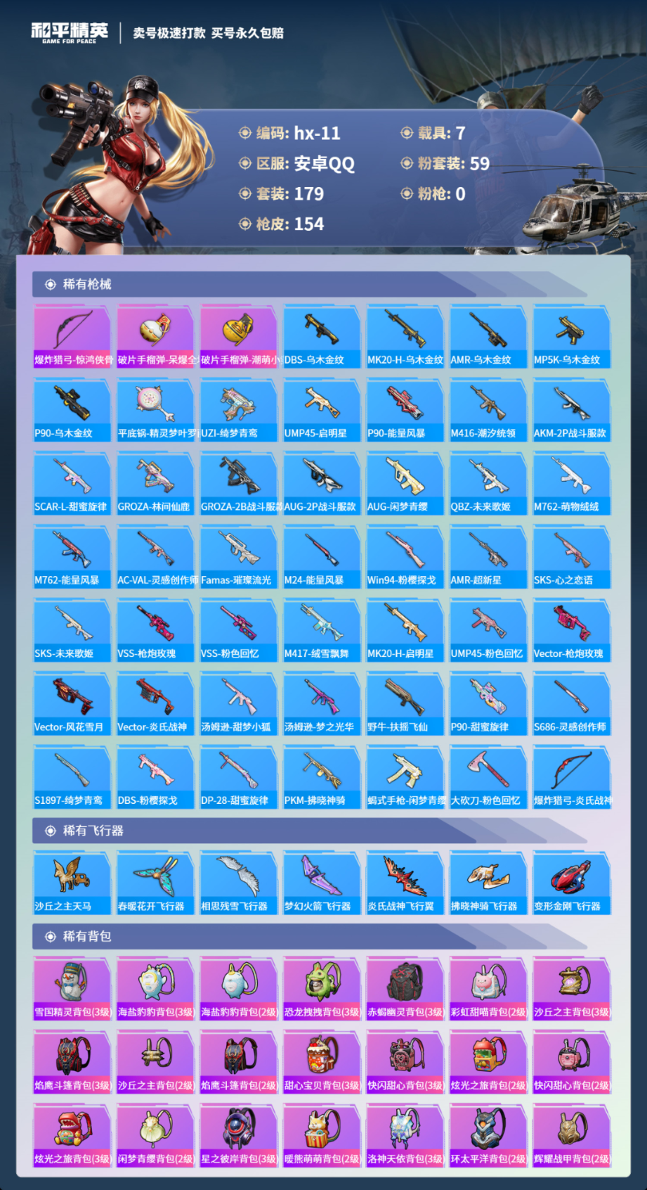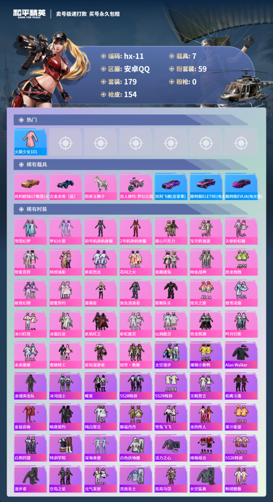 7载具-179套装-154枪皮-安卓 手Q-59粉装-9特效枪-7载具-84388热力值-5印记-179套装-154枪皮