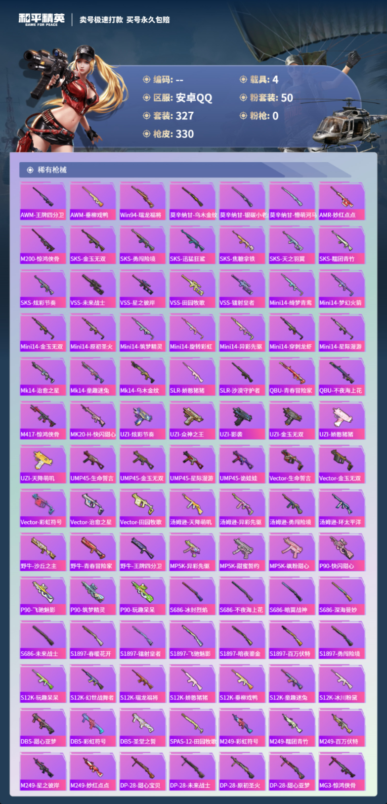 4载具-327套装-330枪皮-安卓 手Q-50粉装-28特效枪-4载具-热力值-17印记-327套装-330枪皮