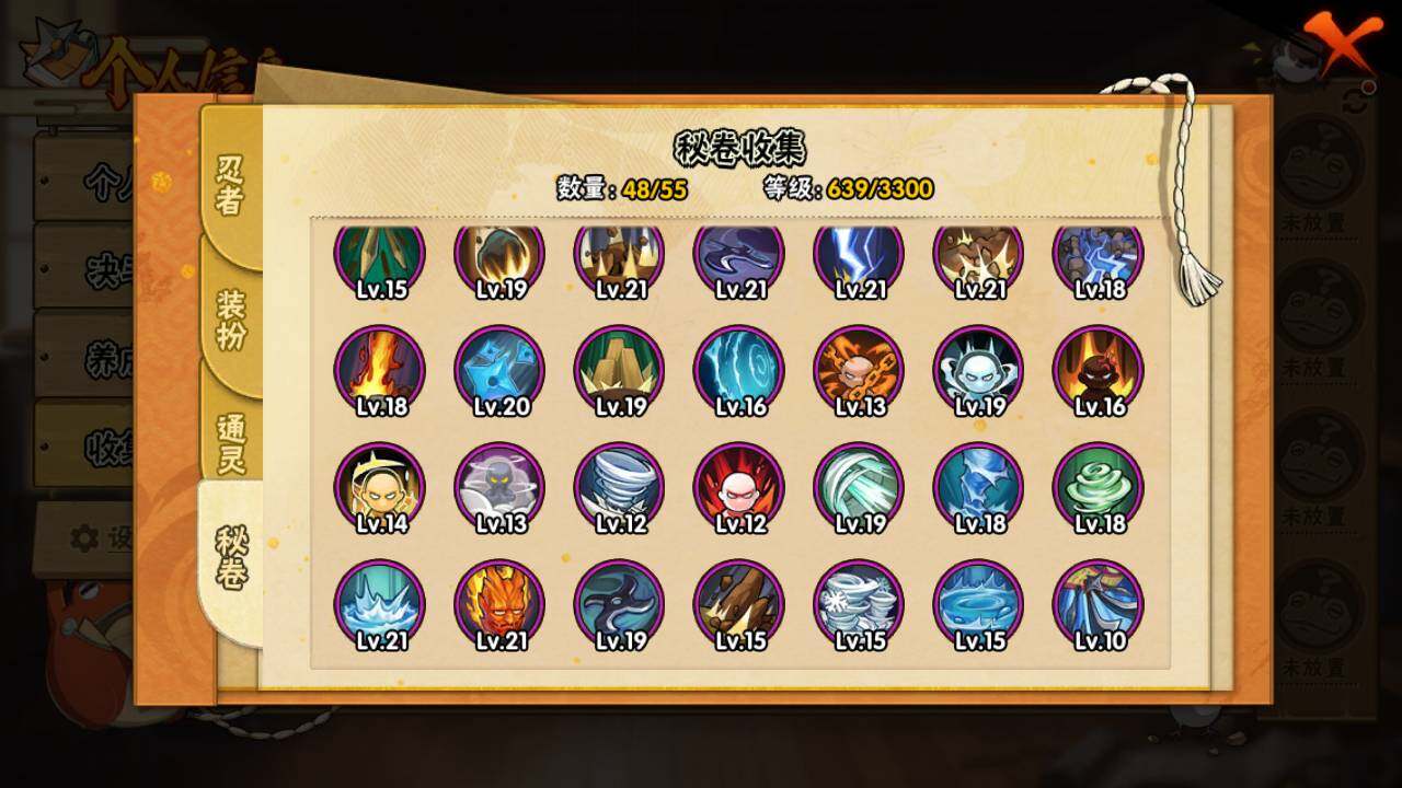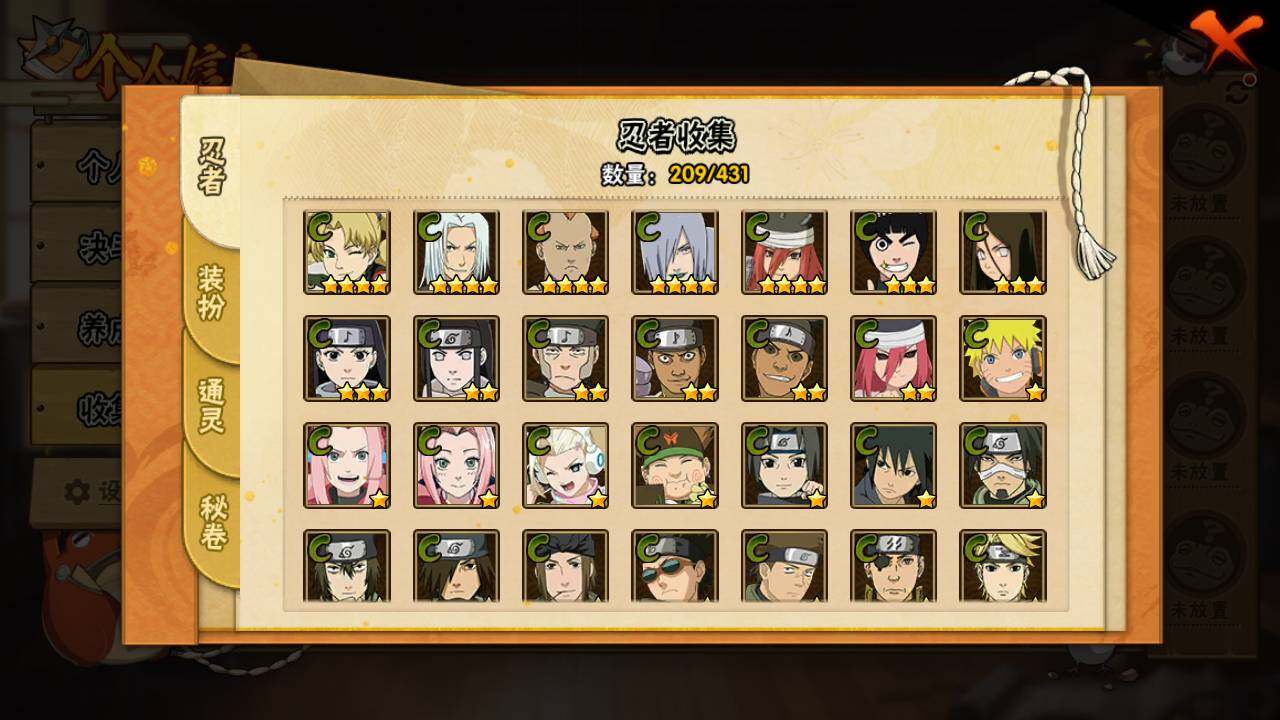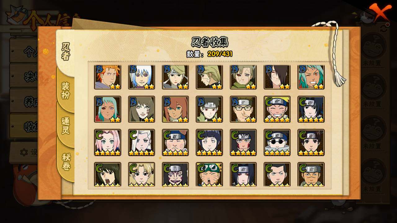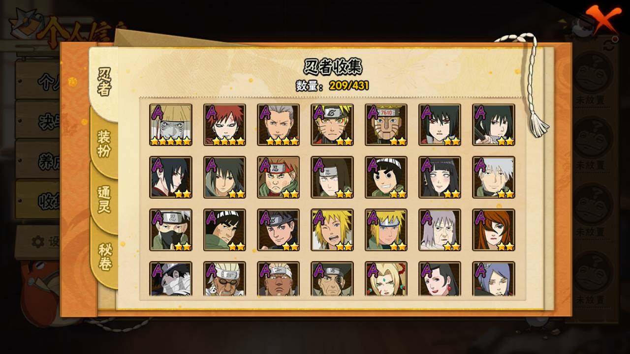 【S级忍者】:猿飞日斩「秽土转生」(3星),波风水门「秽土转生」(3星),千手扉间「秽土转生」(3星),千手柱间「秽土转生」(3星),宇智波鼬「秽土转生」(3星),宇智波斑「秽土转生·解」(3星),宇智波带土「忍界大战」(3星),艾「忍界大战」(3星),宇智波鼬「须佐能乎」(3星),旗木卡卡西「