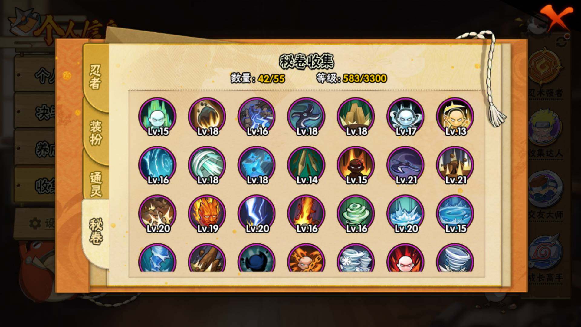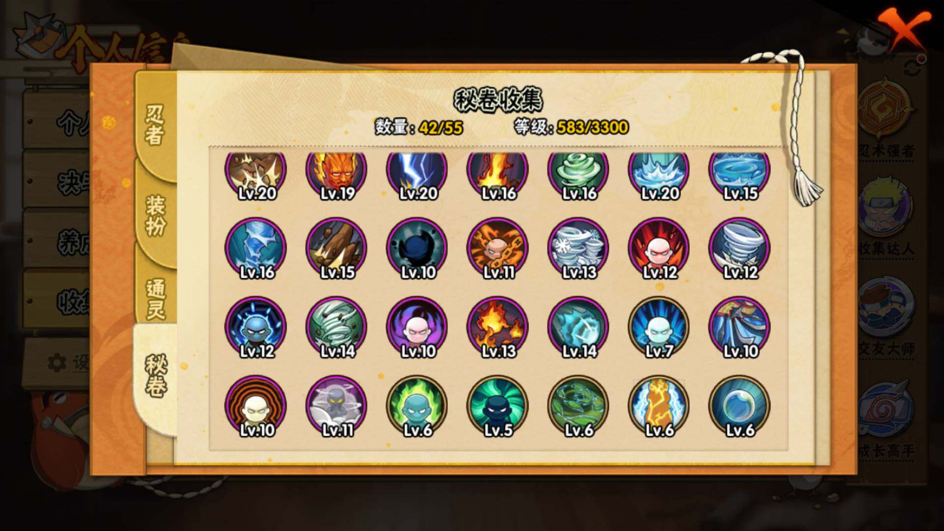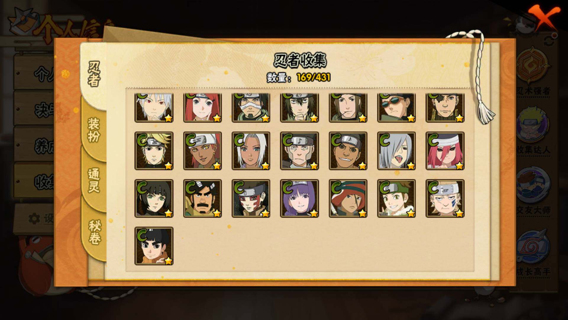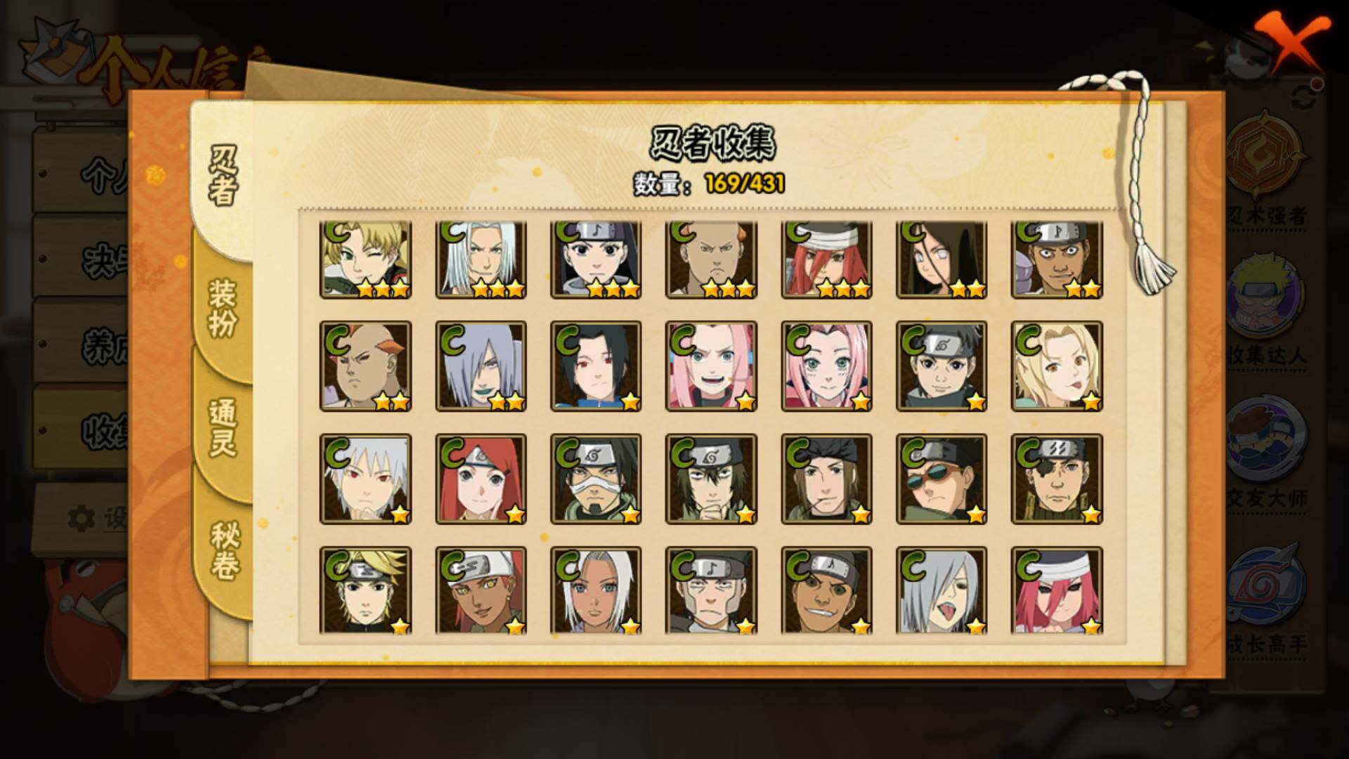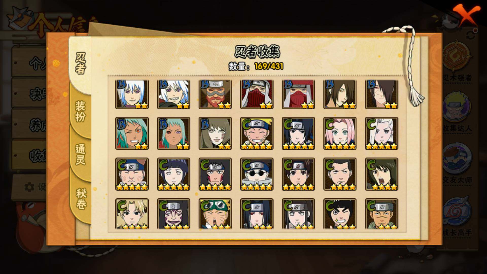 【S级忍者】:猿飞日斩「秽土转生」(3星),波风水门「秽土转生」(3星),千手扉间「秽土转生」(3星),宇智波斑「秽土转生·解」(3星),大野木「忍界大战」(3星),艾「忍界大战」(3星),宇智波鼬「须佐能乎」(3星),千手柱间「木叶创立」