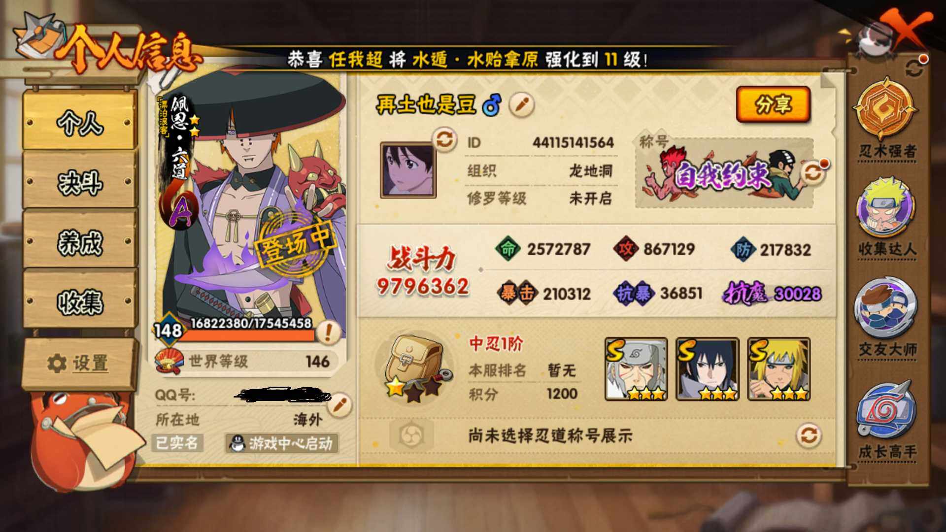 (可免费转苹果)V10 20S 31A 979万战力 热门A最终章雏田 忍战我爱罗 漂泊六道 S碎片自来也59片 忍战带土43片 天道超42片 YY2131