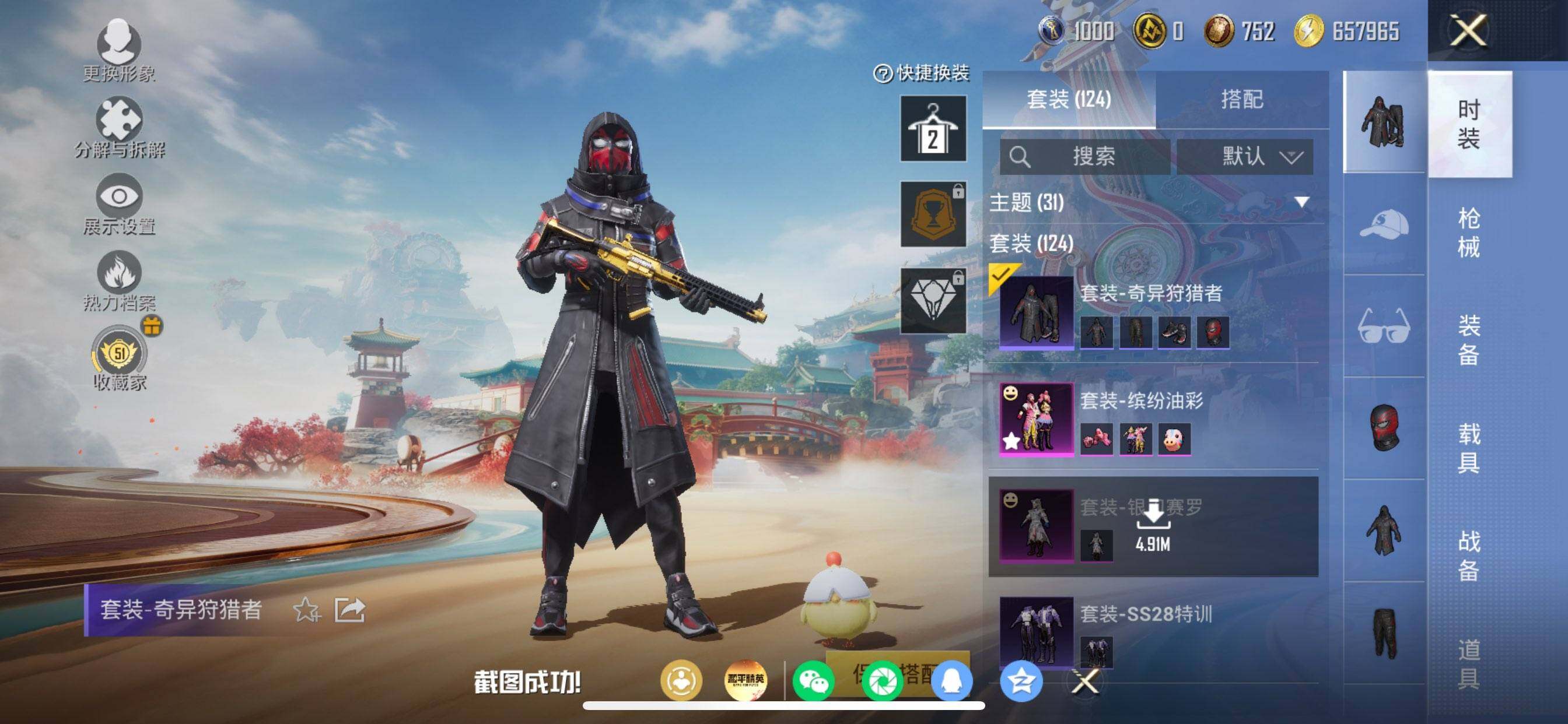 苹果 手Q-2粉装-4特效枪-0载具-1粉色飞行器-46403热力值-8王牌印记-124套装-152枪皮