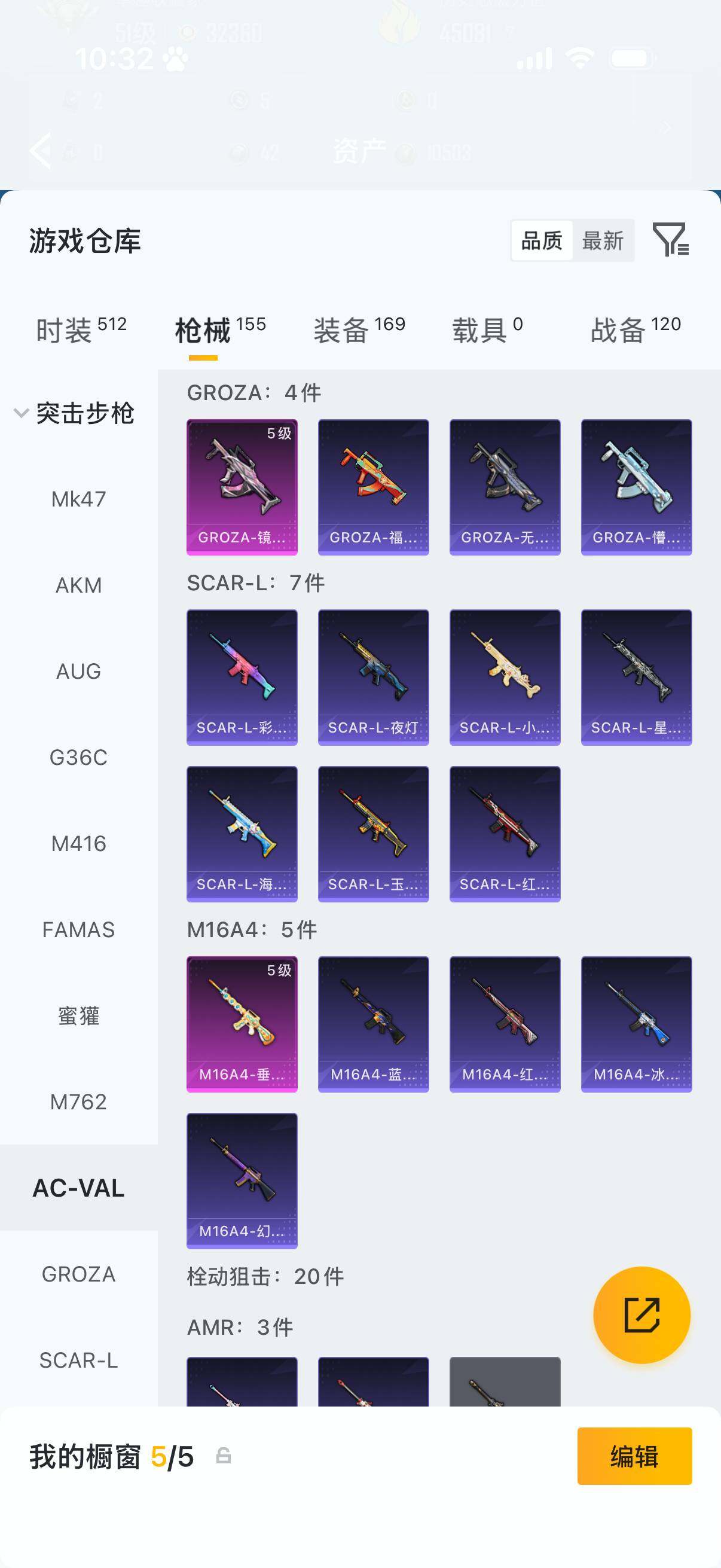 【粉色枪皮等级】:M16A4-垂柳戏鸭(五级),GROZA-镜光银凌(五级),AUG-暖羊咩咩(五级),Kar98K-巳巳如意(五级),Mk14-福马献瑞(五级),DP-28-豹影疾电(