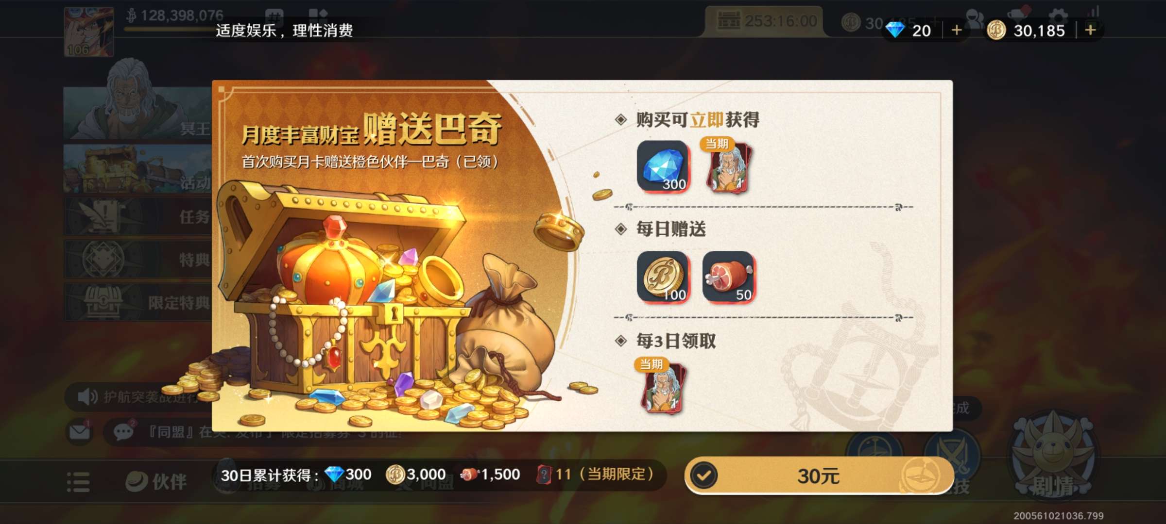 号上还有3万金币,雷利已出,红卡就差麦哲伦已经44片下次活动随便出