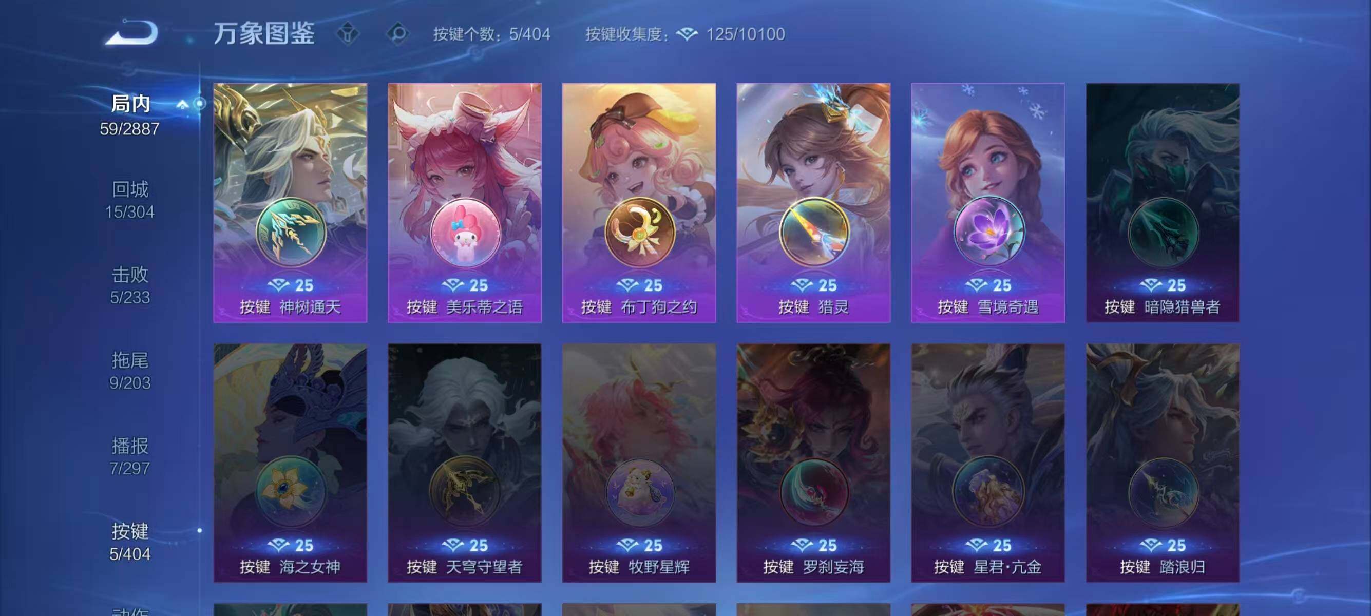 【限定皮肤】:狄仁杰阴阳师,孙尚香蔷薇恋人,达摩沙漠行僧,兰陵王金庭之子,李元芳云中旅人,鬼谷子五谷丰年,沈梦溪大漠名商,裴擒虎李小龙,艾琳女武神