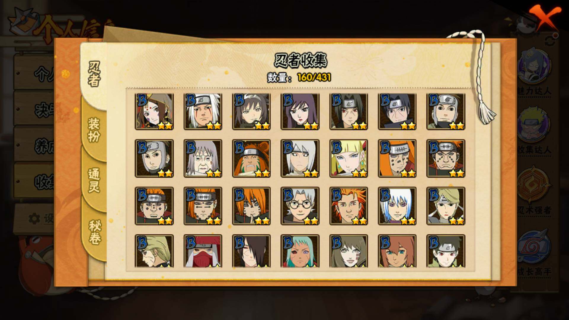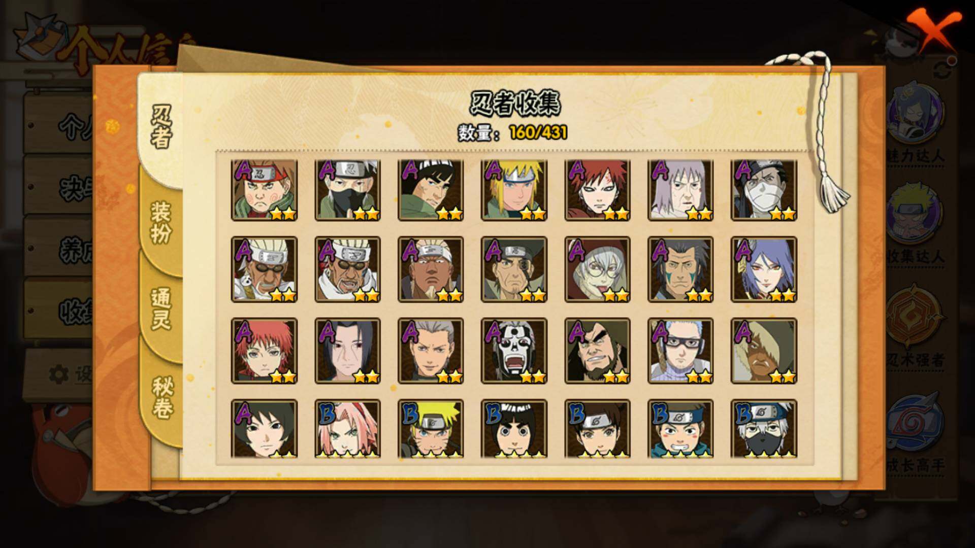 【S级忍者】:波风水门「秽土转生」(3星),宇智波鼬「秽土转生」(3星),宇智波斑「秽土转生·解」(3星),宇智波鼬「须佐能乎」(3星),自来也「舞之豪杰」(3星),大蛇丸(3星),波风水门(3星),药师兜「仙人模式」(3星),漩涡鸣人「九喇嘛连结」(3星),迈特凯「死门」