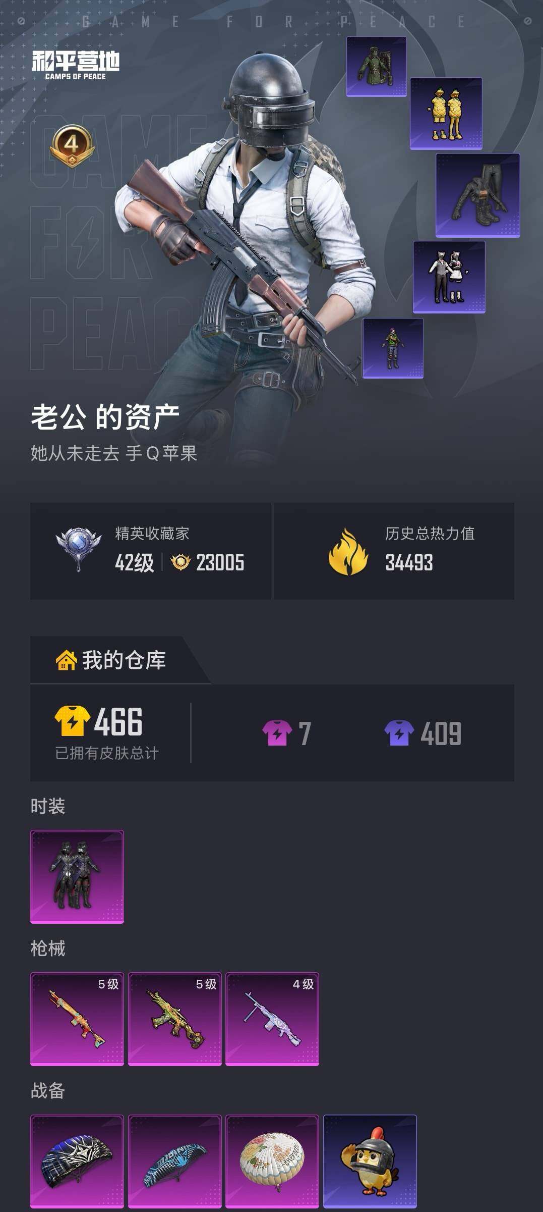 【AZH3649】苹果 手Q【软萌银虎】1粉装-3特效枪-0载具-0粉色飞行器-34493热力值-4王牌印记-114套装-126枪皮