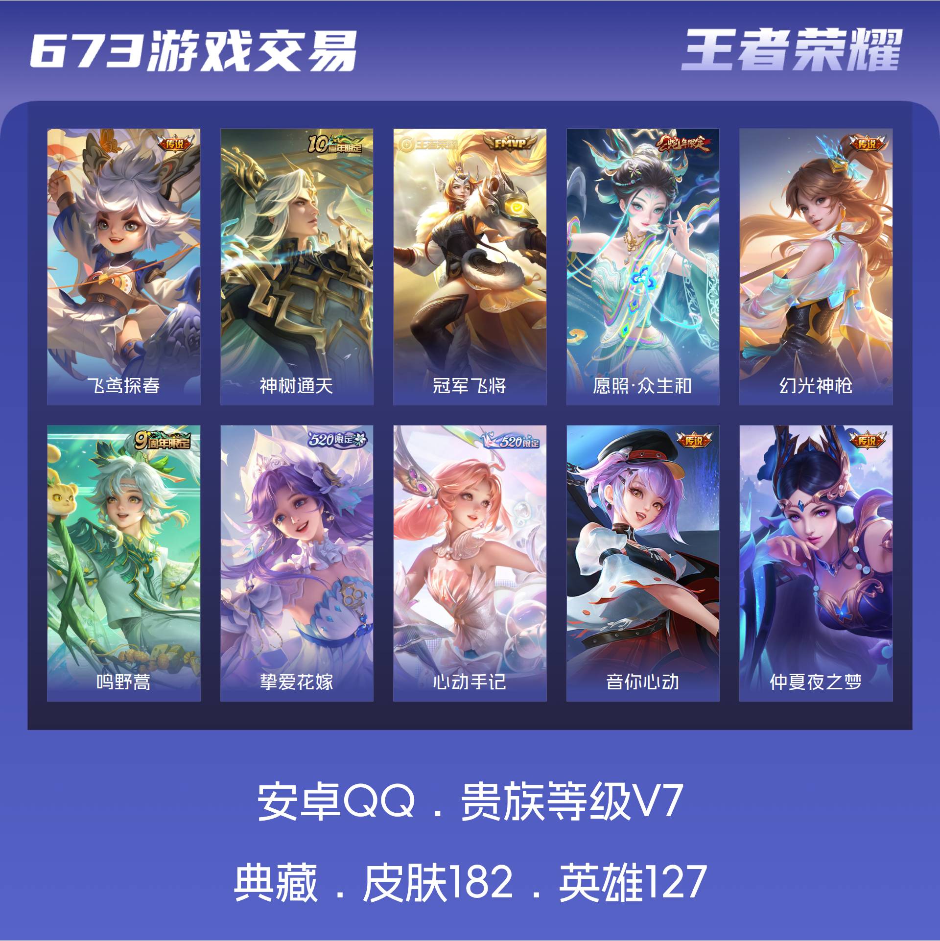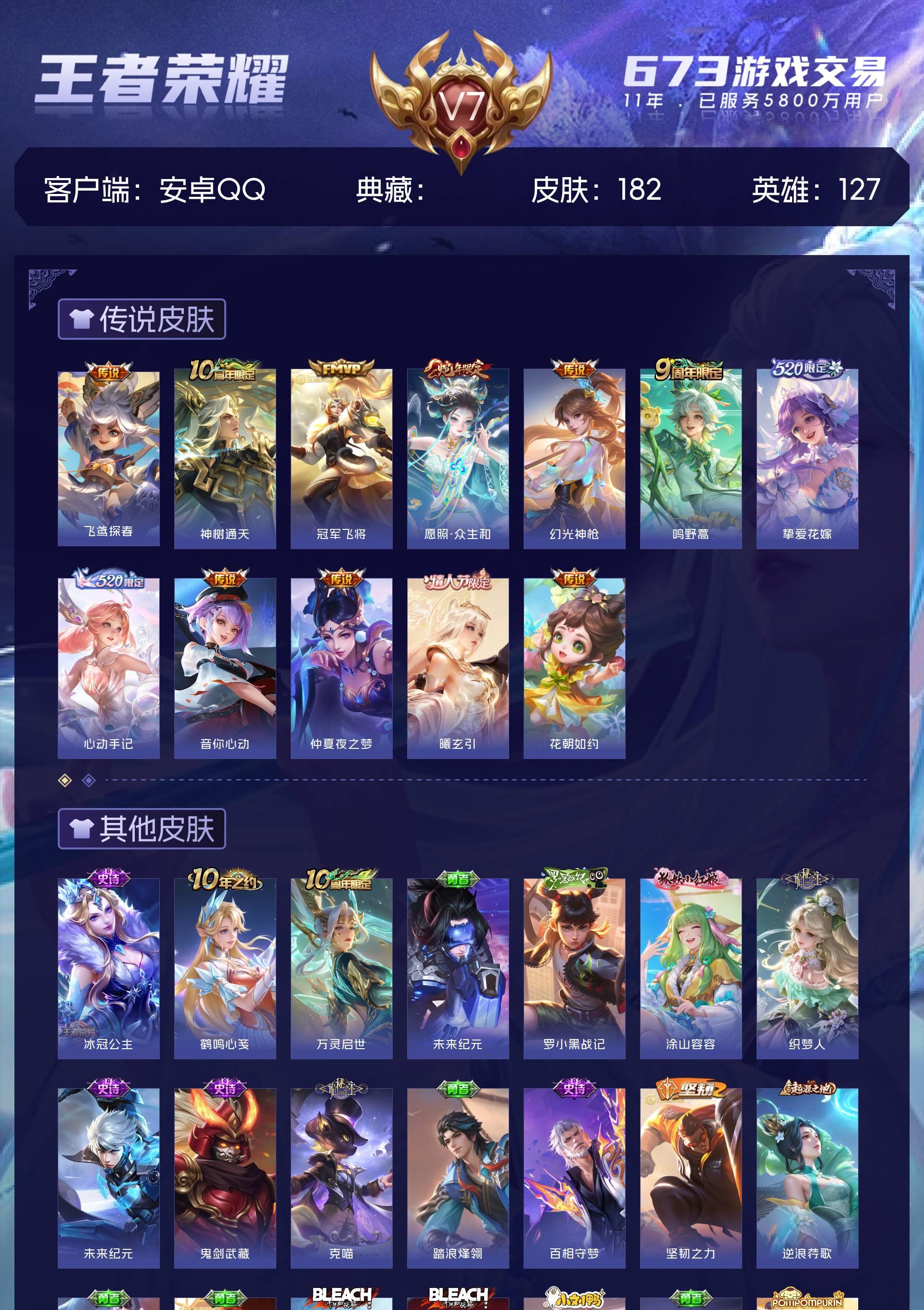 V7 皮肤182 英雄127 永恒钻石 传说12