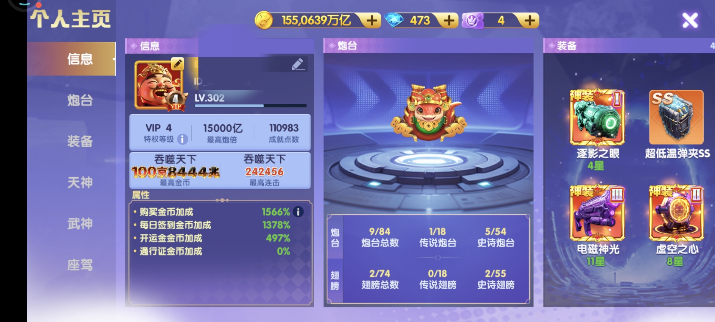 神电套装,1.5万炮,天神全激活,洪荒4级体验,1200连击