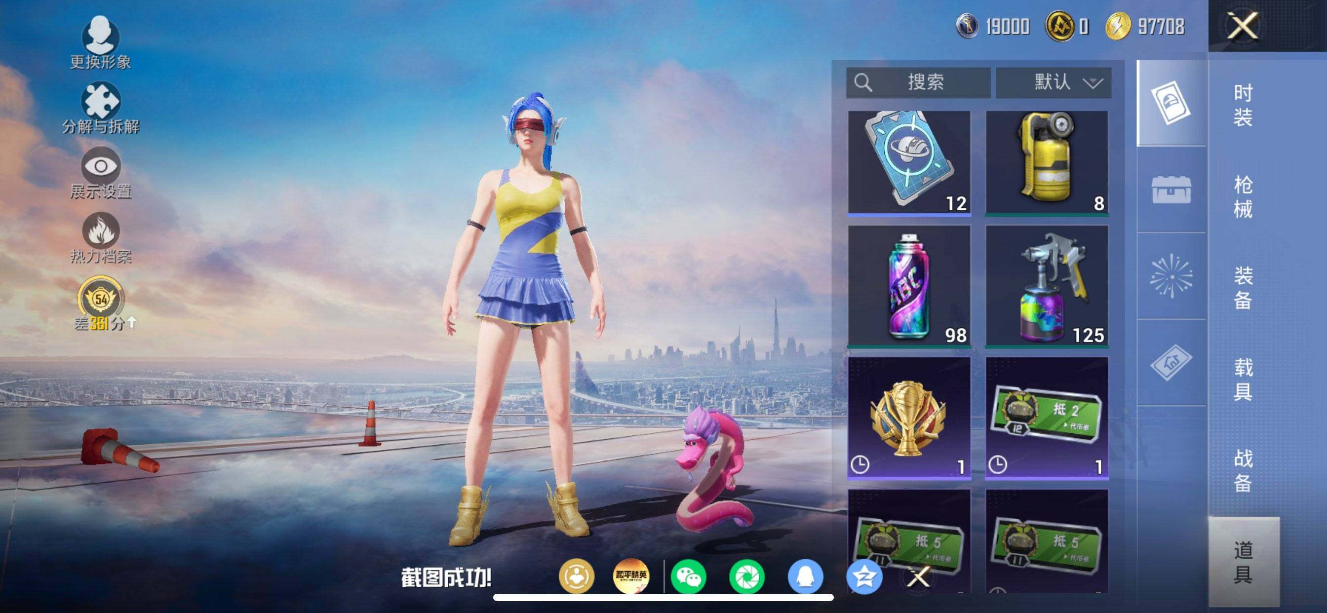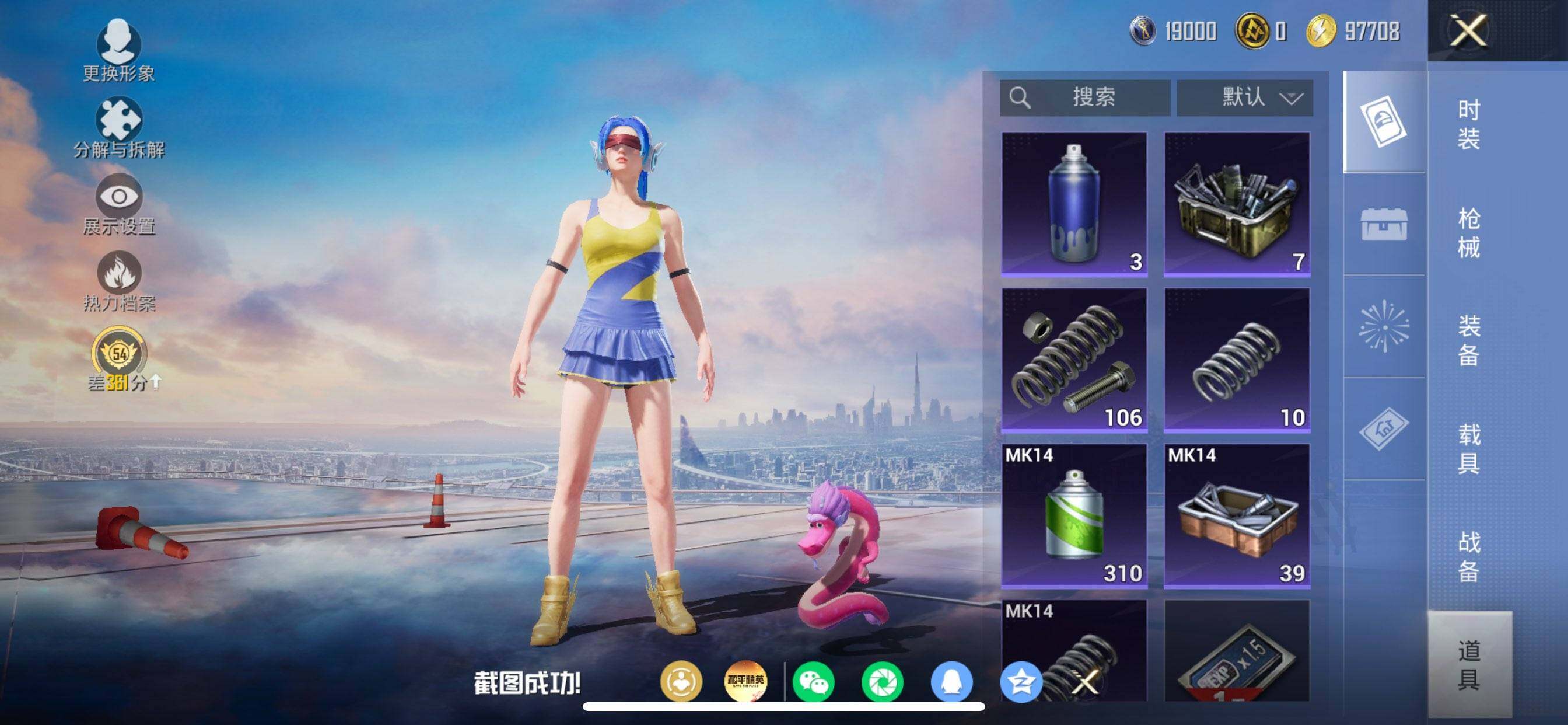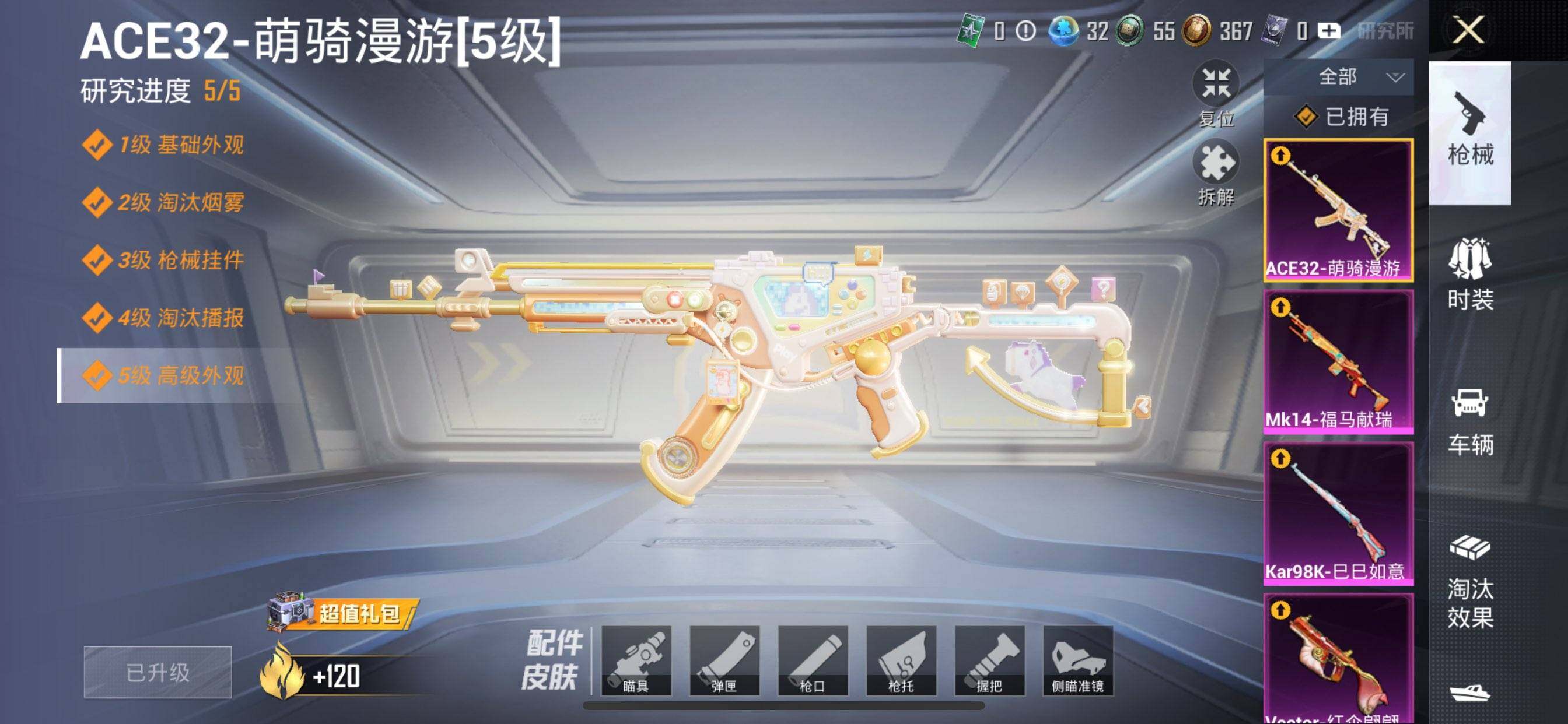苹果 手Q-8粉装-6特效枪-0载具-1粉色飞行器-44090热力值-6王牌印记-107套装-139枪皮