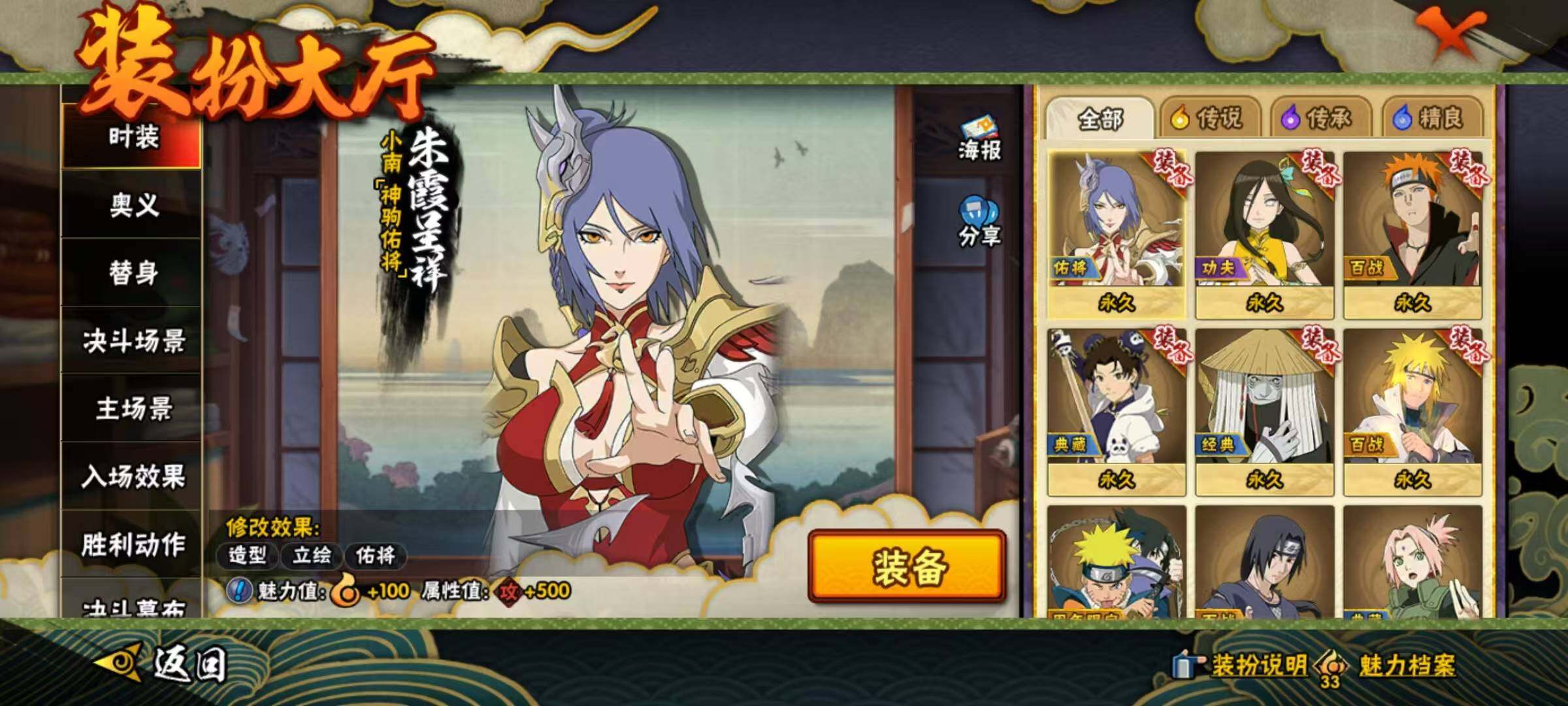 【S级忍者】:宇智波鼬「须佐能乎」(3星),旗木卡卡西「须佐能乎」(3星),自来也「舞之豪杰」(3星),波风水门(3星),佩恩「天道」(3星),漩涡鸣人「暴怒·第六尾」(3星),波风水门「九喇嘛连结」(3星),漩涡鸣人·宇智波佐助(3星)