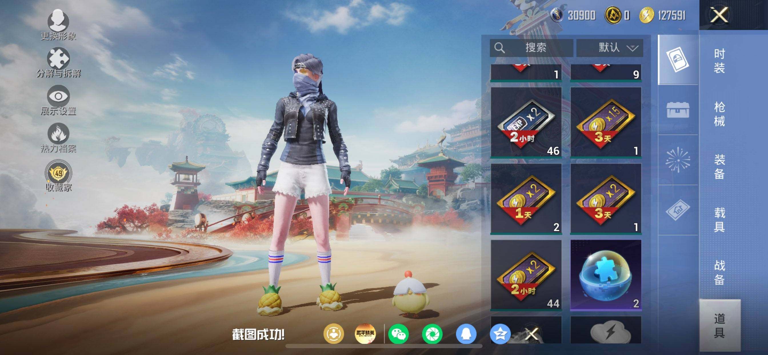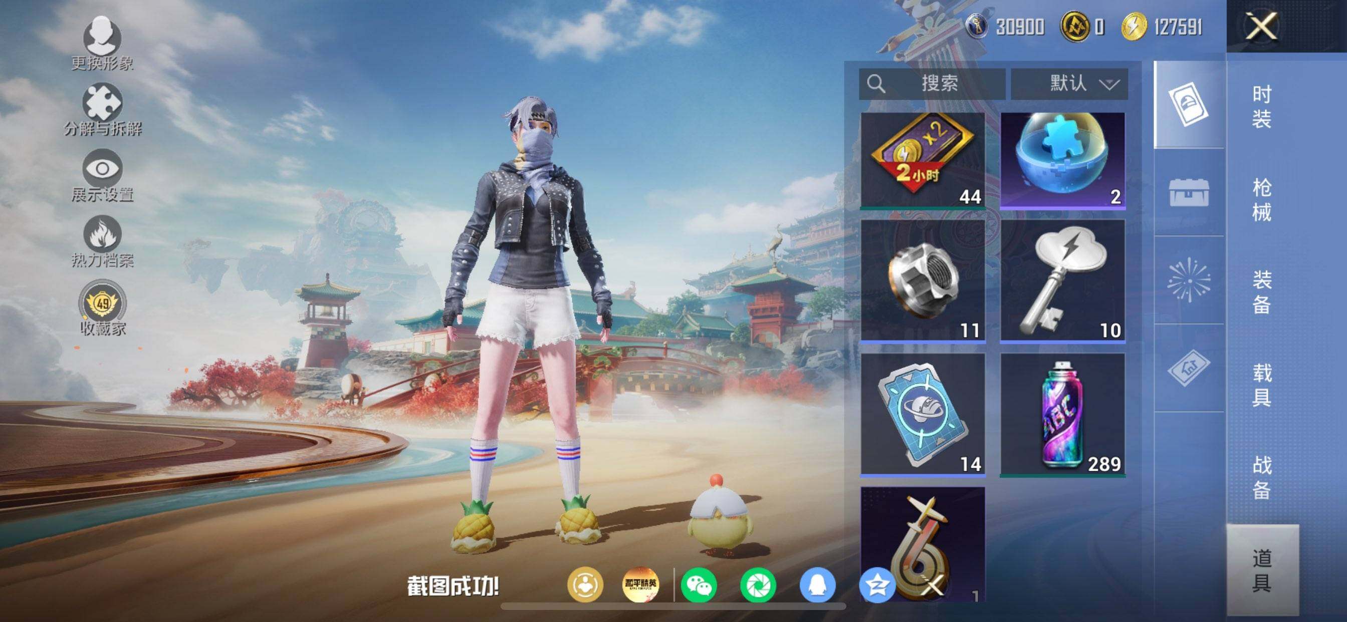 苹果 手Q-1粉装-5特效枪-0载具-1粉色飞行器-39343热力值-7王牌印记-122套装-152枪皮