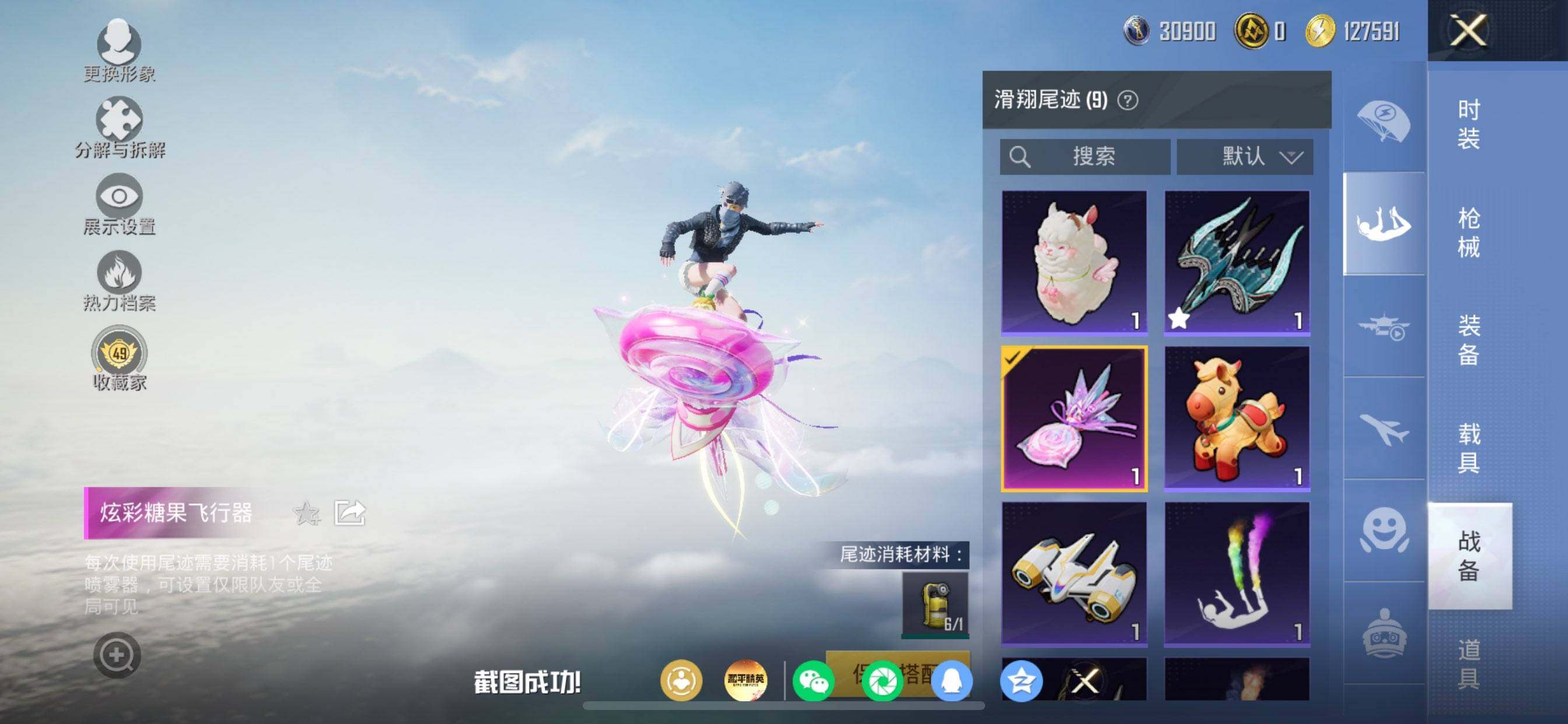 苹果 手Q-1粉装-5特效枪-0载具-1粉色飞行器-39343热力值-7王牌印