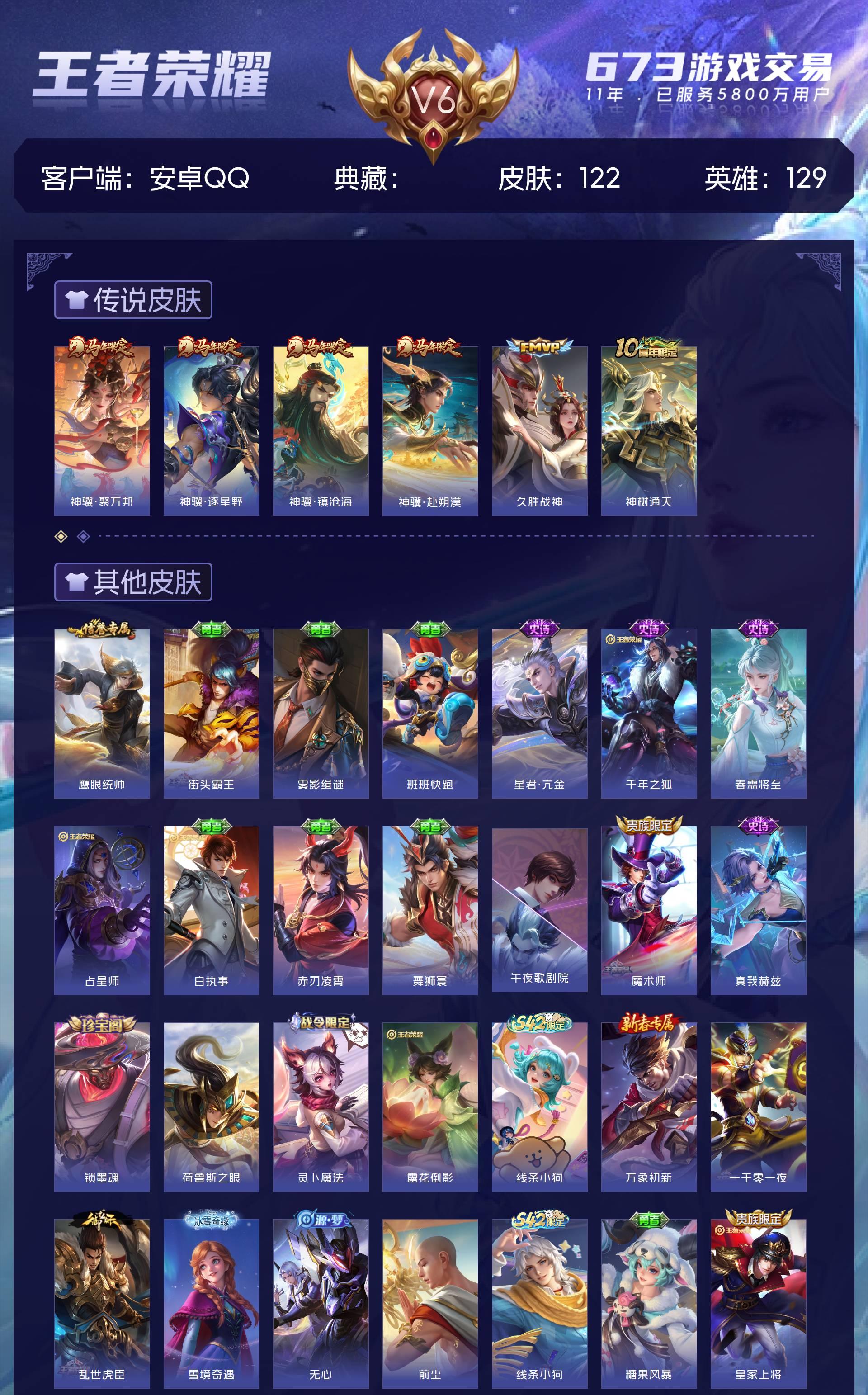 V6 皮肤122 英雄129 尊贵铂金 星传说3 传说6