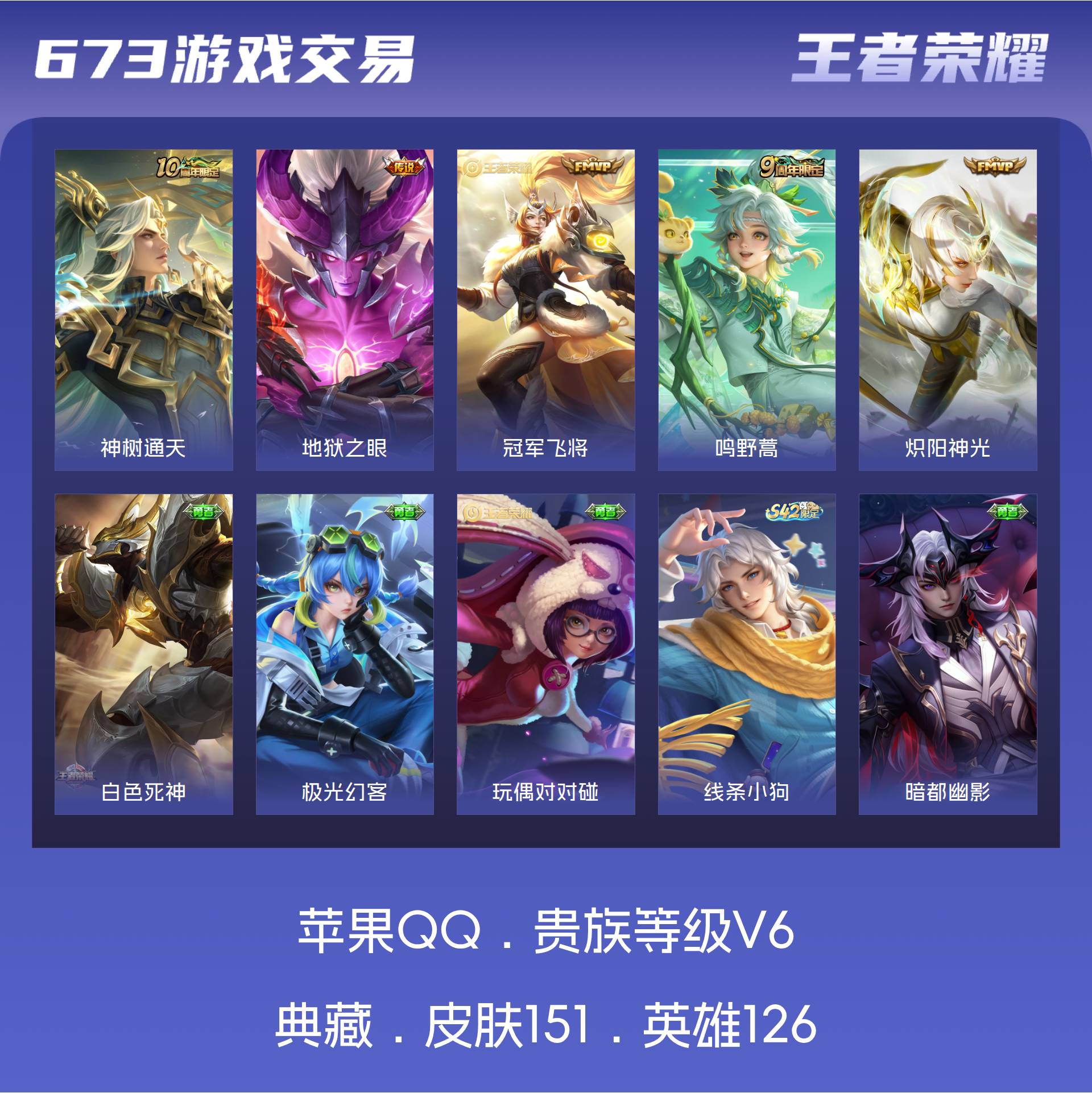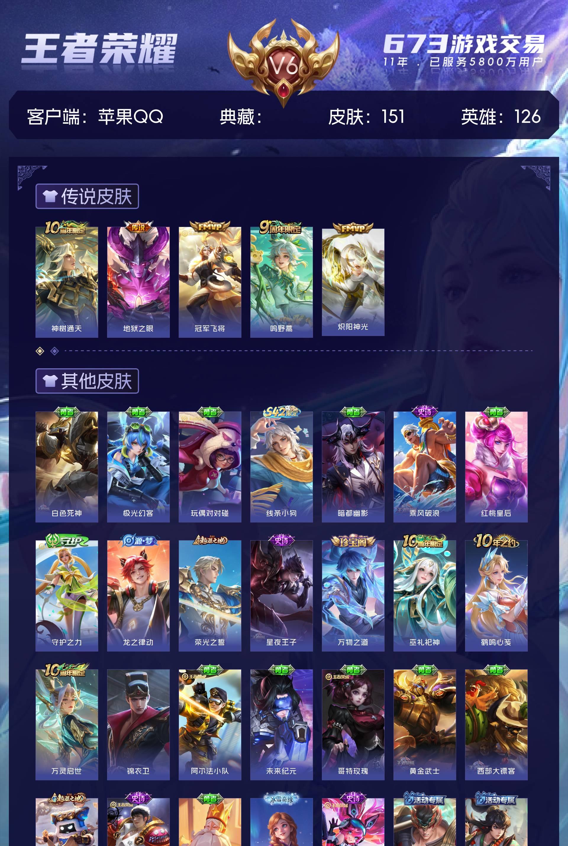 V6 皮肤151 英雄126 永恒钻石 传说5