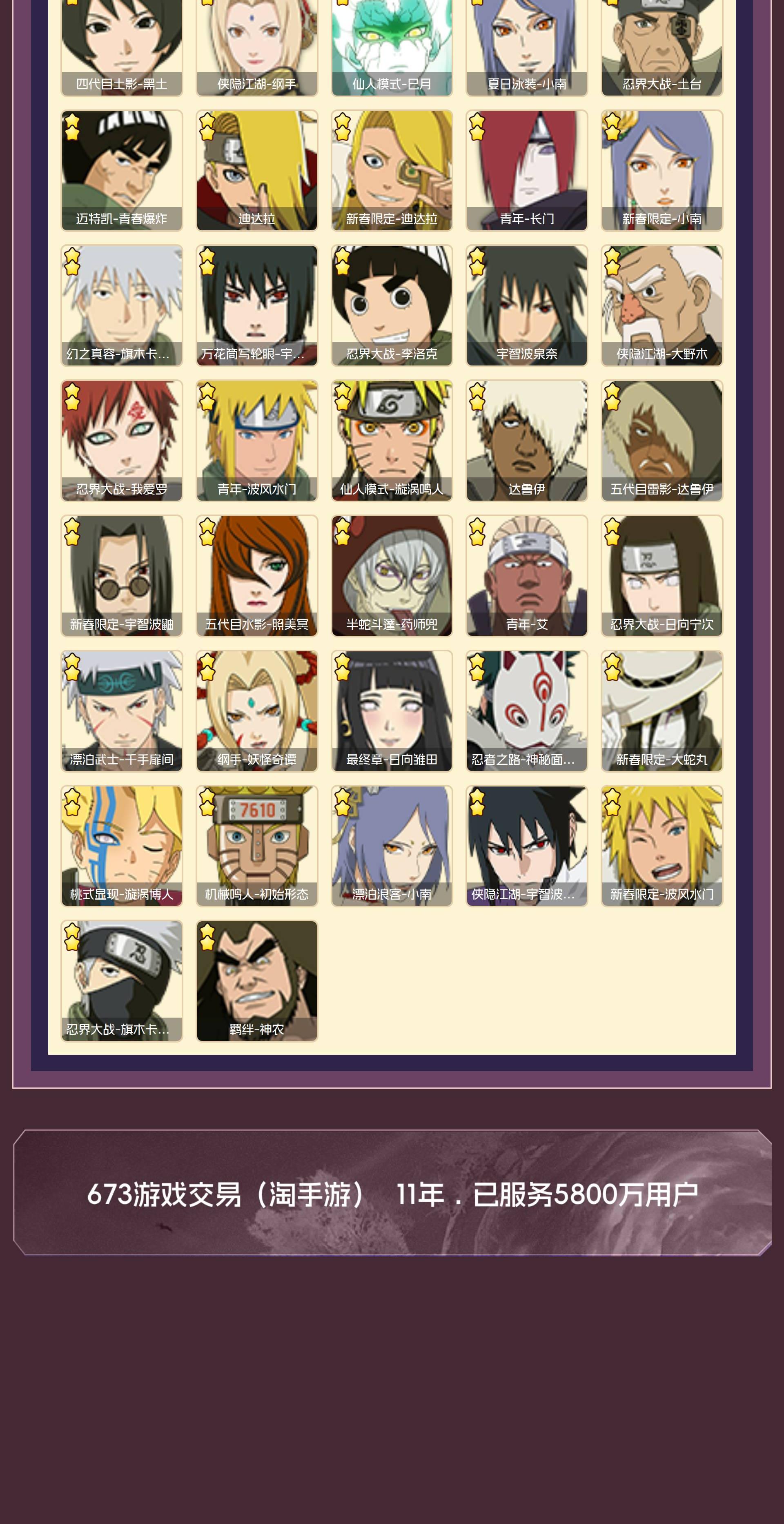 43s准46s 十带80片 半藏84片 秽土鼬64片 氪金a通灵多 氪金场景多