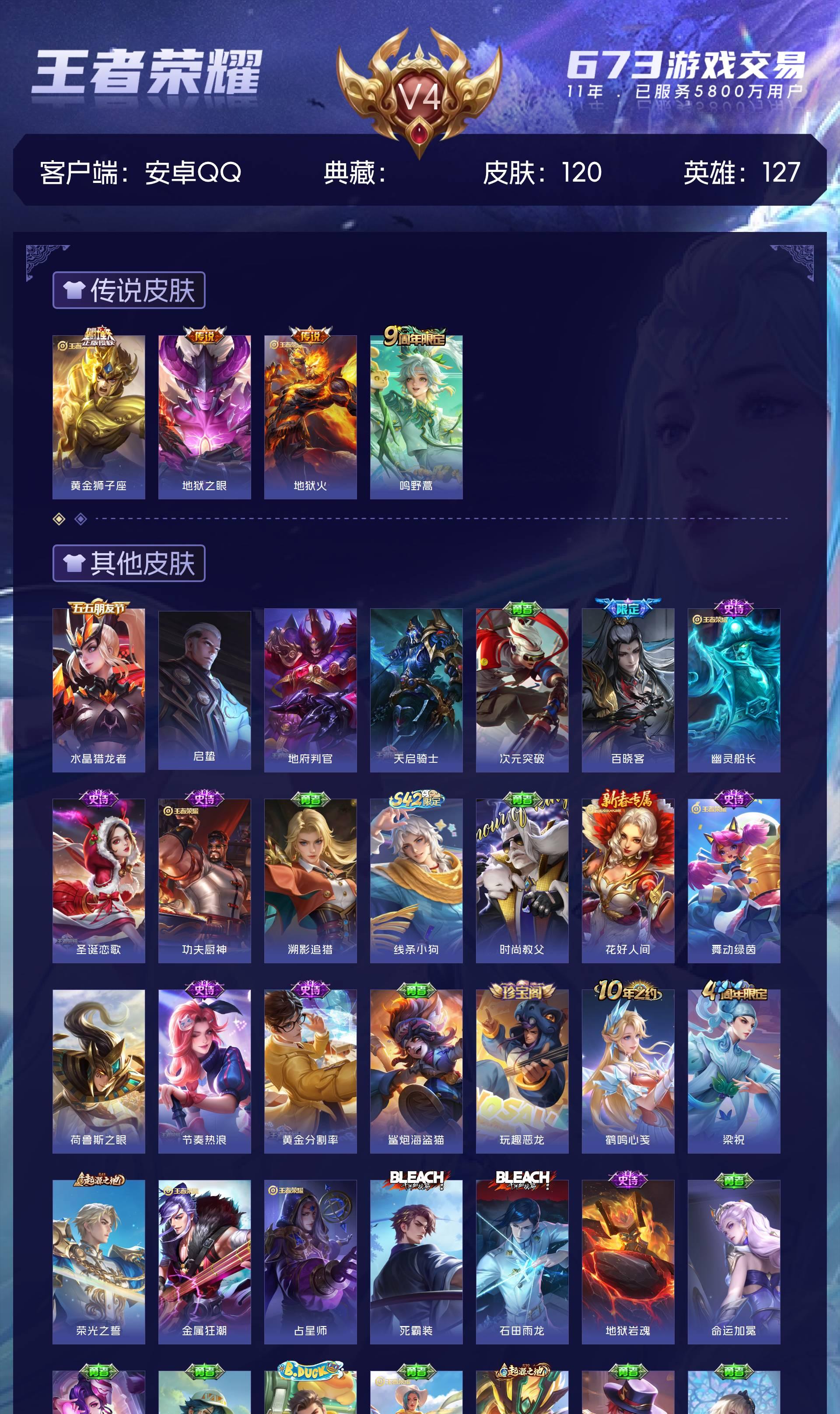 V4 皮肤120 英雄127 永恒钻石 星传说1 传说4