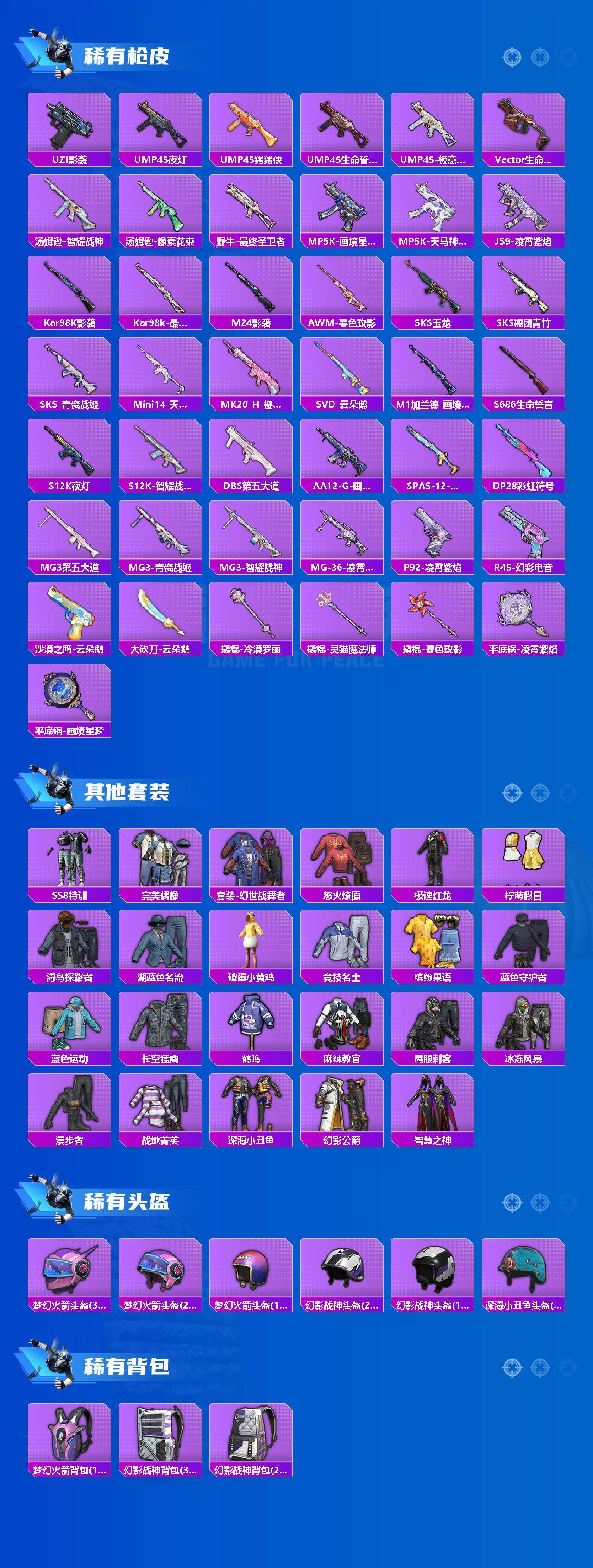 身法号-艾丽娅2级/瑞拉/第五大道/深海小丑鱼/都市/晶辉守护/秘语星愿/青瓷战姬/蜜露汐语/火箭少女/宁雨蝶/冷漠罗丽/AMR智耀战神7级/Kar98K巳巳如意5级/Mk14福马献瑞5级/DP28豹影疾电5级/凌风神骏/暮色幽蹄/冰绡玉鳞(2红装-4粉装-8粉枪-3载具)没战神框 HP7348-5粉色飞行器-42805热力值-6王牌印记-75套装-131枪皮