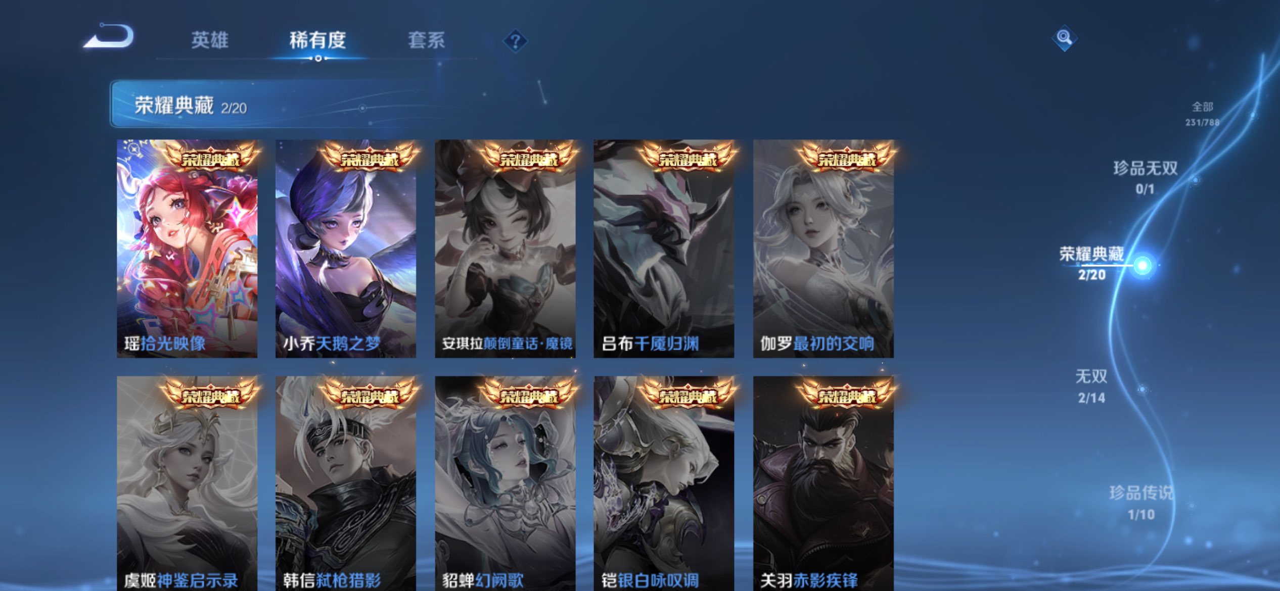 苹果QQ/可二次/v9精品女号差2300v10/全皮瑶+5天幕+14个性按键/秩序白银/231皮肤/126英雄/2典藏/0珍品无双/2无双/1珍品传说/30传说/81史诗/9稀有英雄【1 珍品传说】大耳狗之梦 瑶,【2 典藏皮肤】天鹅之梦 小乔,拾光映像 瑶,【2 无双皮肤】真我赫兹 瑶,花合斗 不知火舞,【30 传说皮肤】胖达荣荣 梦奇,鹤归松栖 云缨,永恒水手月亮 王昭君,启明星使 虞