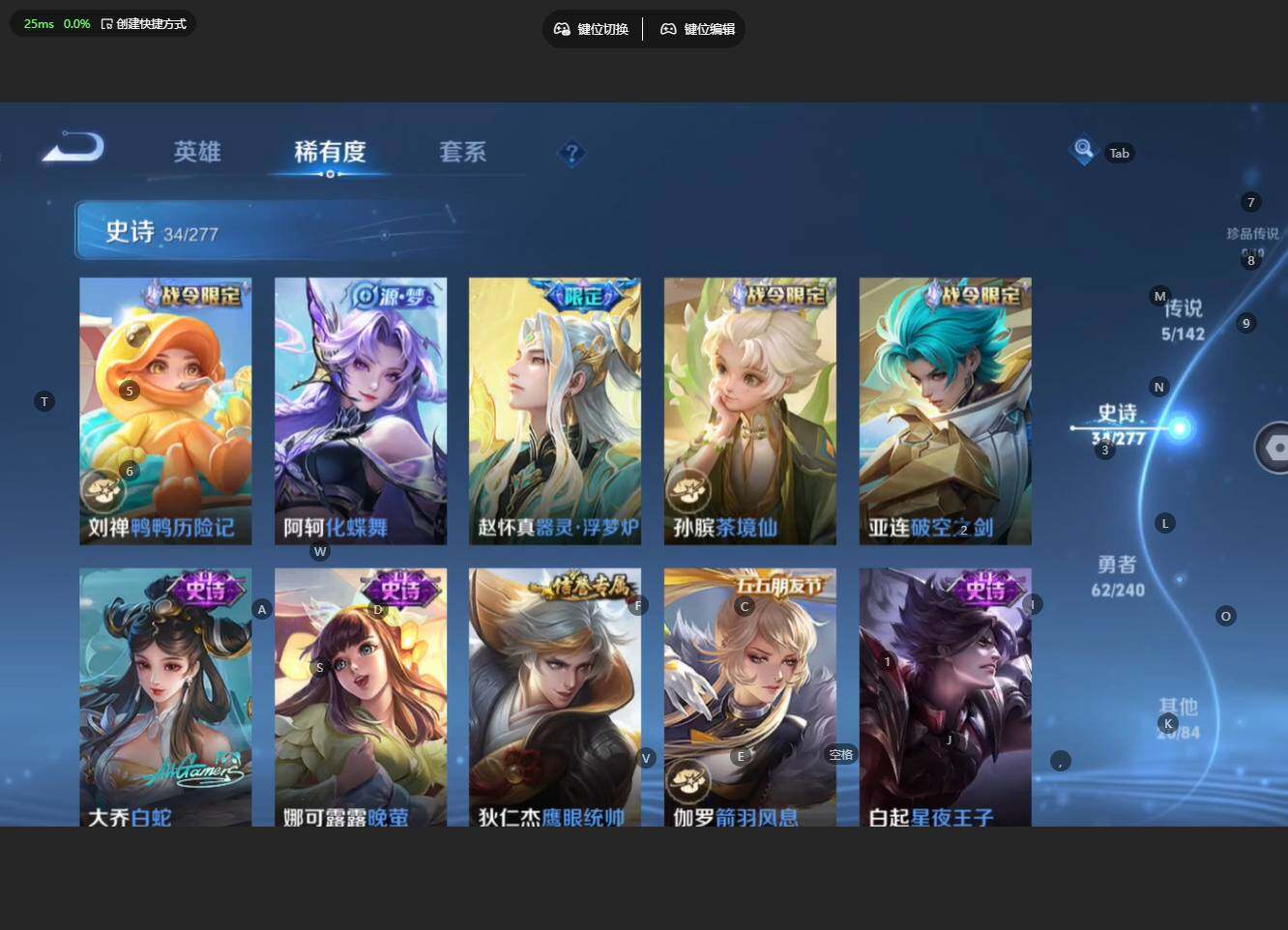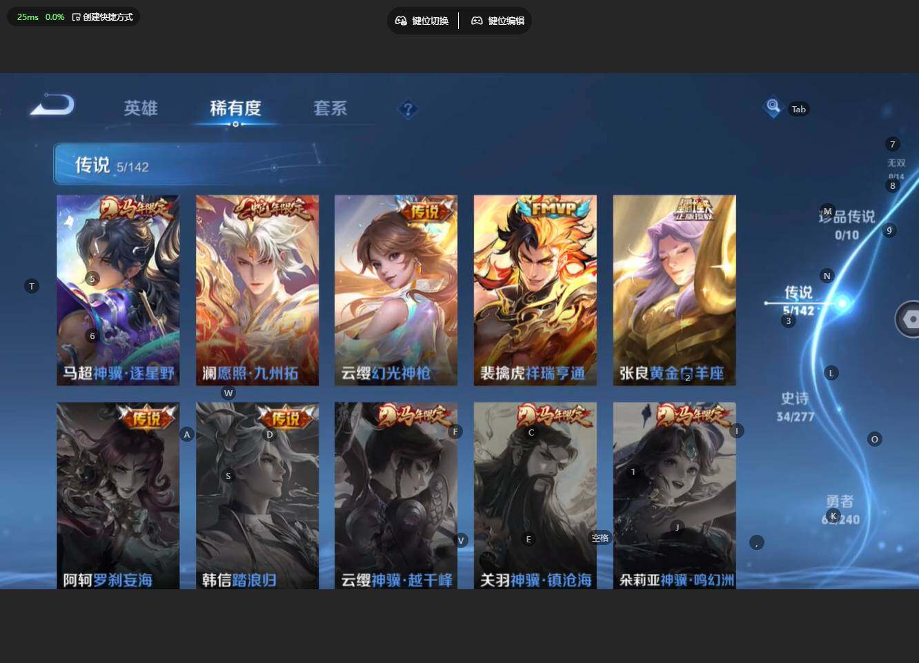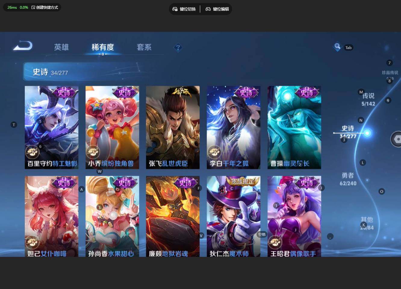 安卓Q-V6-荣耀黄金I段位-117英雄-121皮肤-5传说-32史诗【英雄