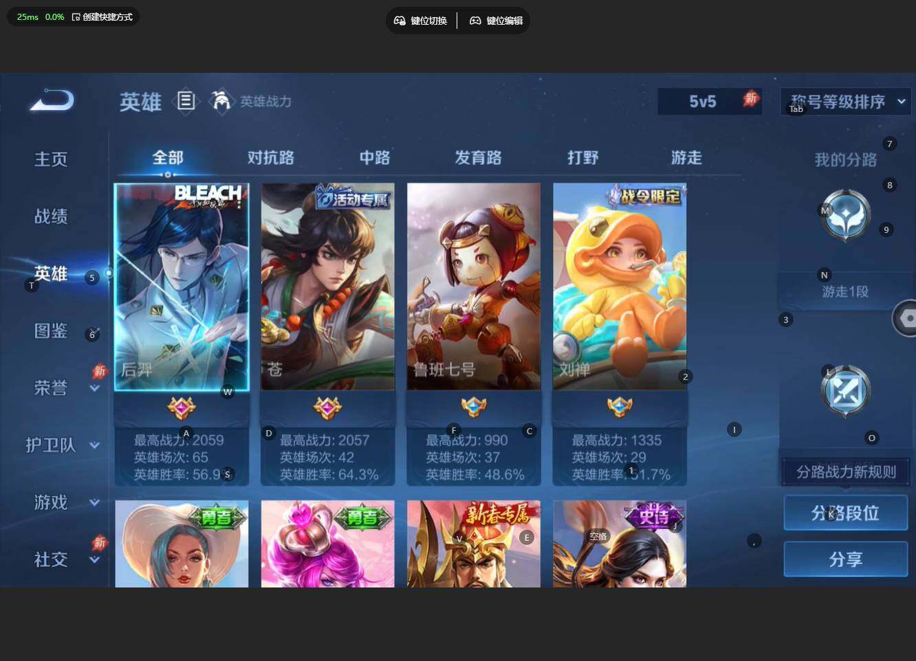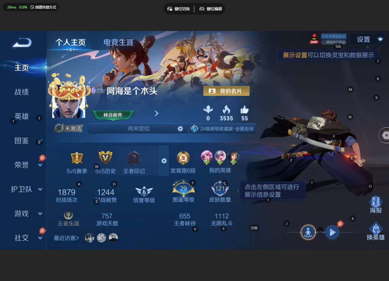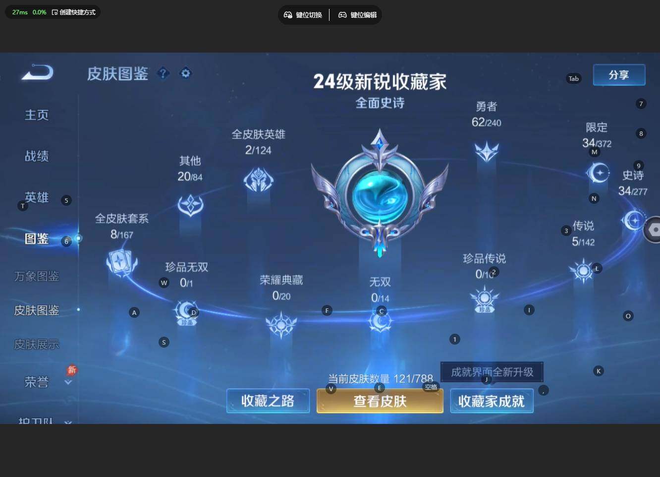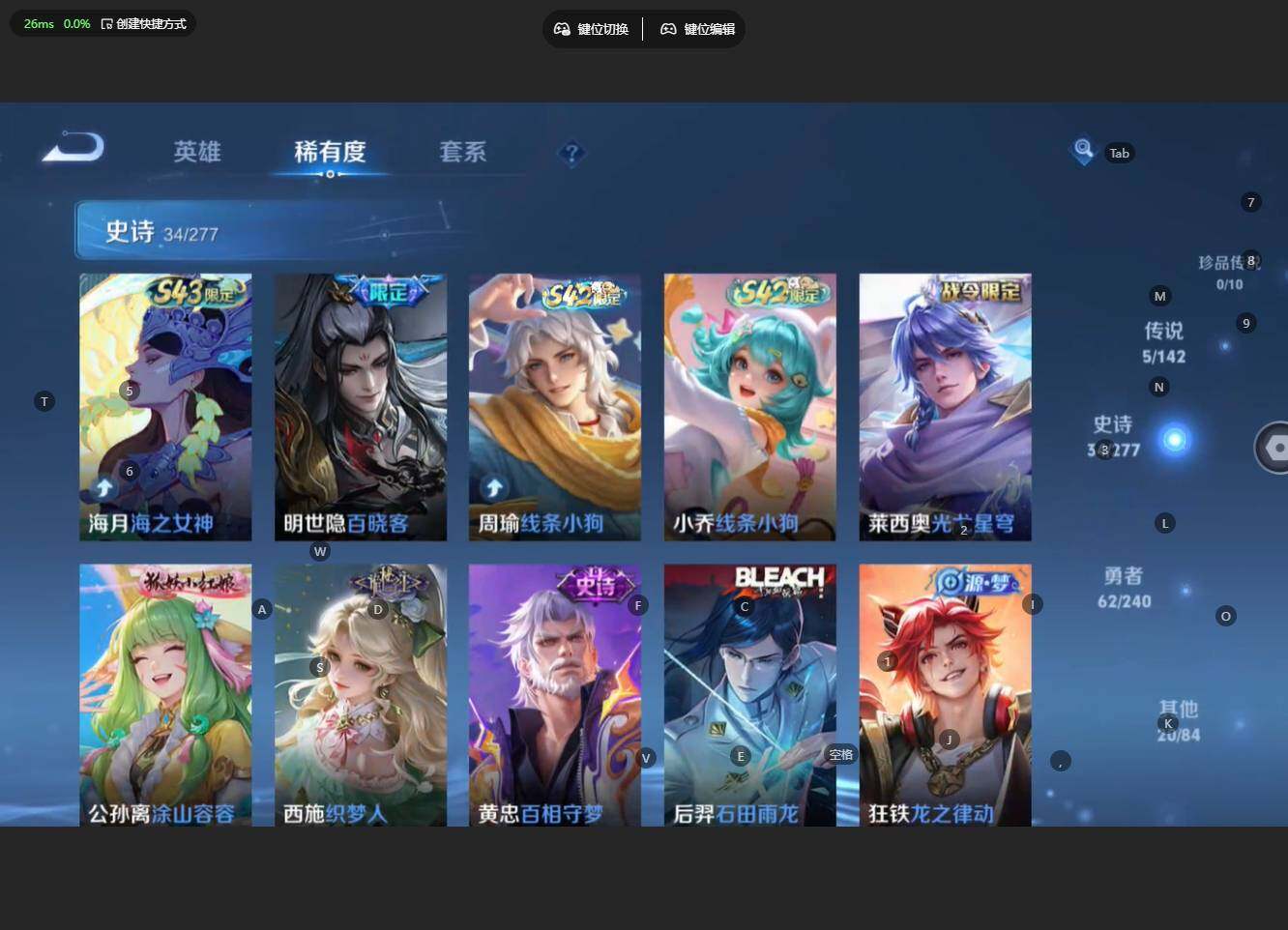 安卓Q-V6-荣耀黄金I段位-117英雄-121皮肤-5传说-32史诗【英雄