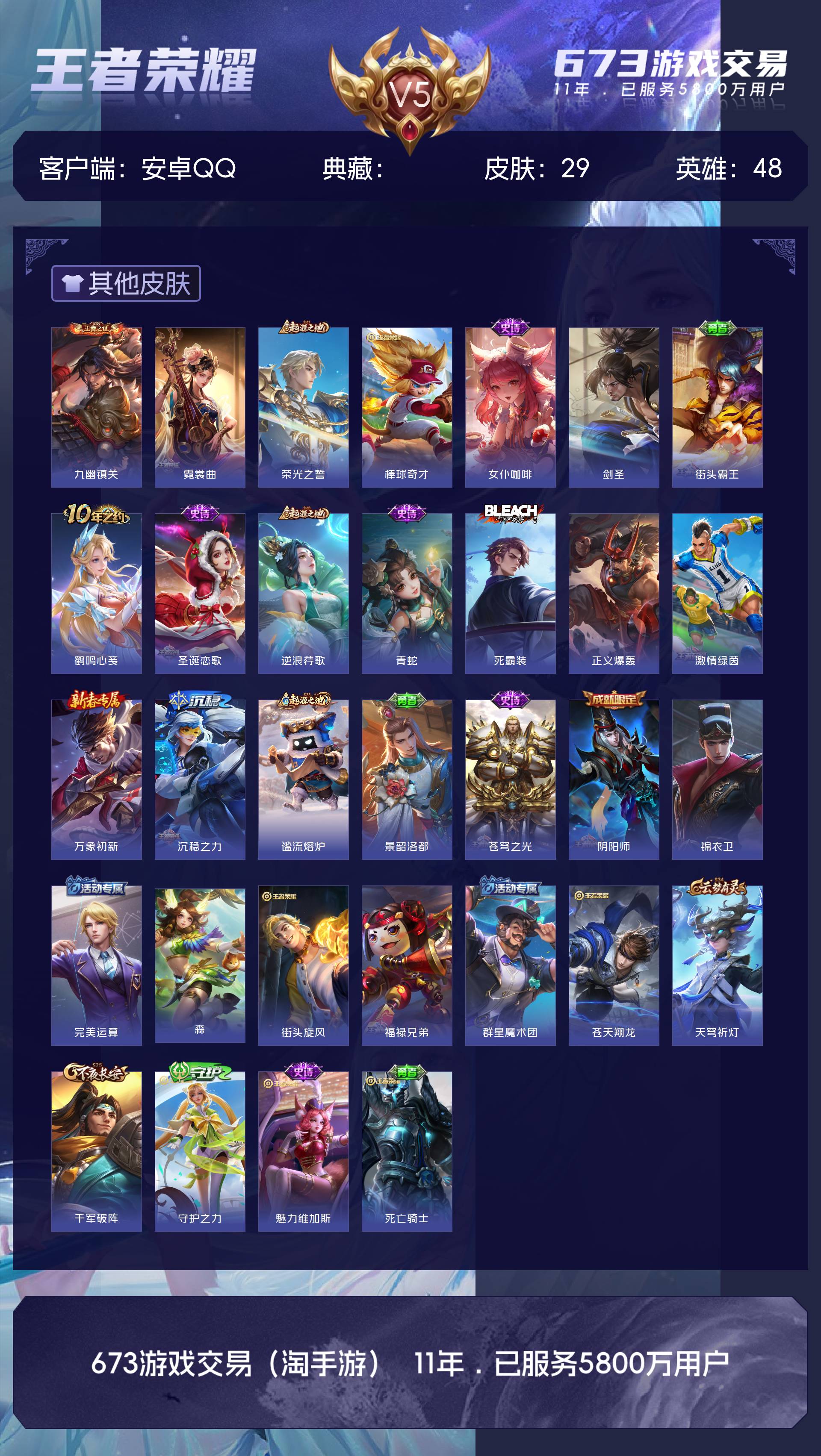 V5 皮肤29 英雄48 至尊星耀