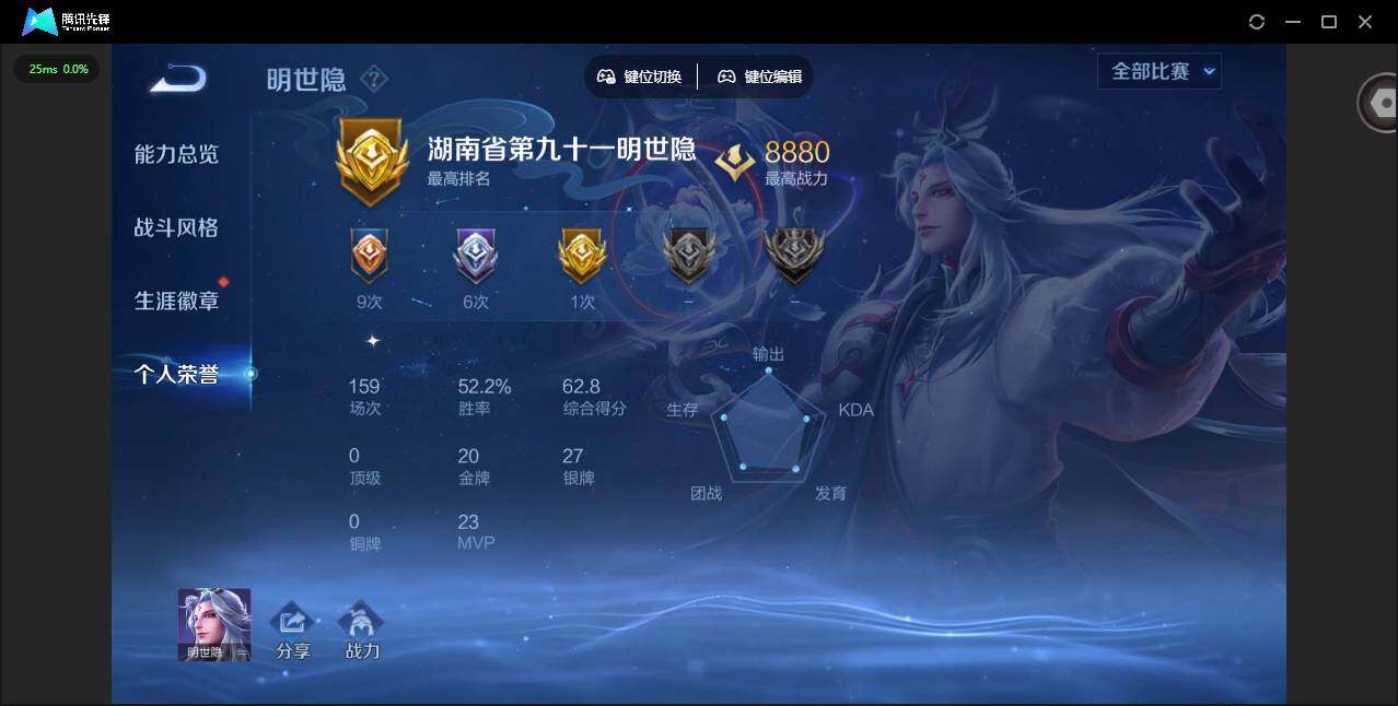 【王者荣耀连体和平精英】【金标阿古朵 金标明世隐】贵族等级: V8 英雄数: 1