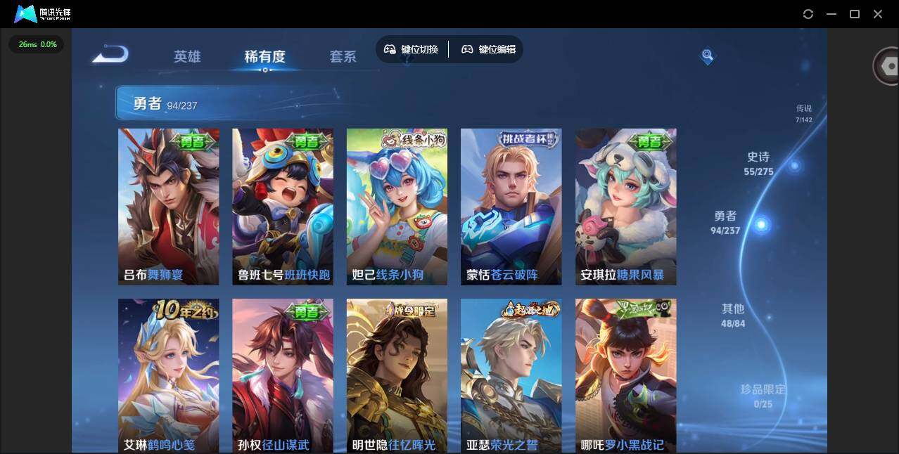 贵族等级: V6 英雄数: 127 皮肤数: 205 荣耀水晶: 神鉴启示录 星
