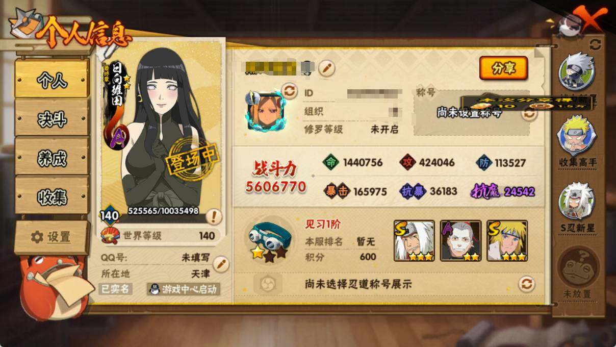 V7/战力560W/S忍6/A忍24/4星干柿鬼鲛/忍界大战