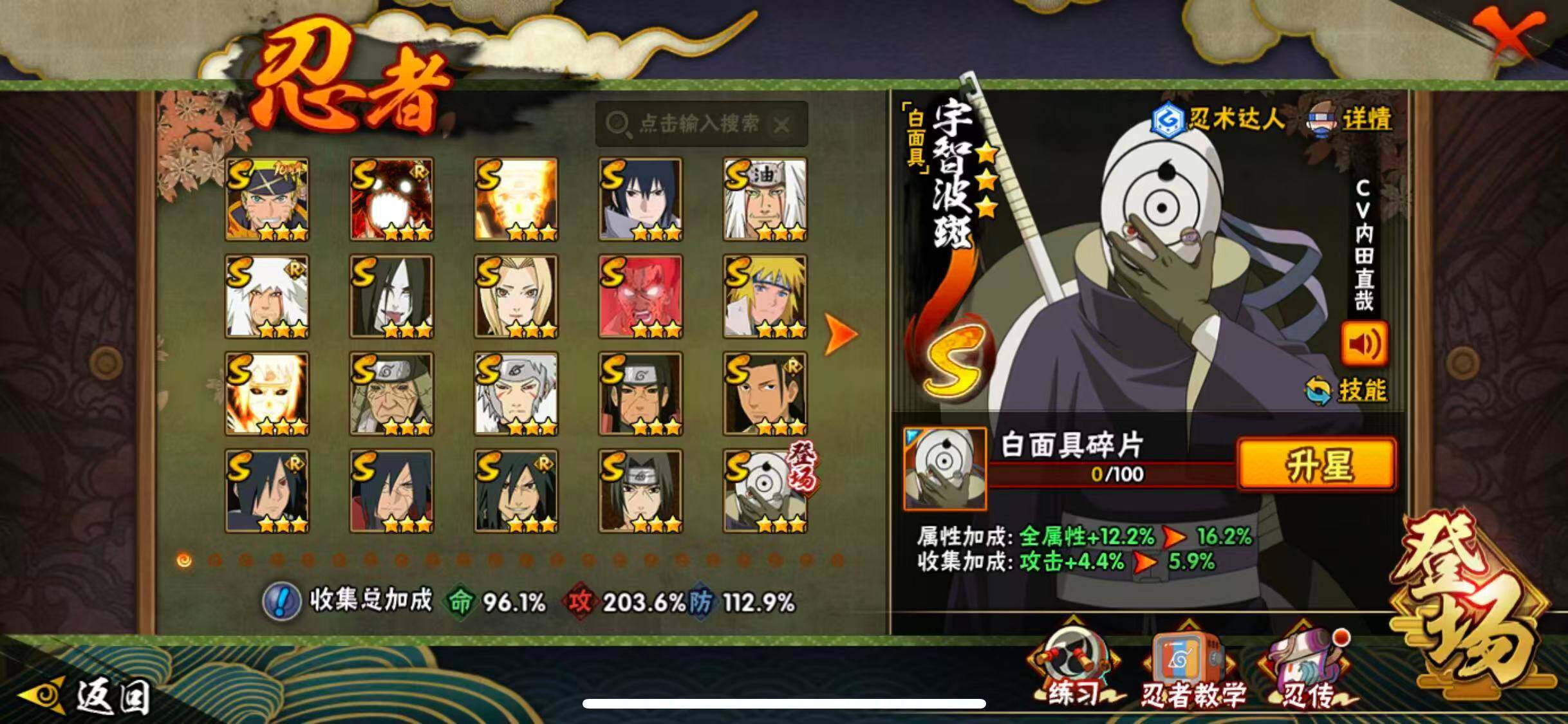 【HYSA1205】V13/战力1255W/S忍32/A忍61/通灵兽26/新春限定-波风水门/2星大野木「侠隐江湖」/忍界大战-旗木卡卡西/纲手/夏日泳装-照美冥/3星波风水门「九喇嘛连结」/3星宇智波带土「十尾人柱力」/五代目雷影-达鲁伊/死司凭血-飞段/元气夏日-旗木卡卡西/宇智波止水/5星猿飞阿斯玛/2星小南「神驹佑将」/新春限定-我爱罗/秽土转生-猿飞日斩/五代目水影-照美冥/千手扉间/3星蝎/5星迈特凯/新春限定-宇智波鼬/自来也/木叶创立-千手柱间/忍者之路-神秘面具男/青年-三船