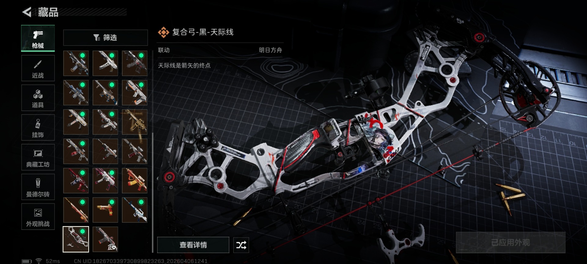 【传说武器皮肤】近战武器-暗星,近战-信条,SG552突击步枪-运动员,93R-捞点薯条,AK-12突击步枪-特斯拉线圈,SR-3M紧凑突击步枪-特斯拉线圈,UZI冲锋枪-特斯拉线圈,M250通用机枪-骑士之心,SCAR-H战斗步枪-启航,ASh-12战斗步枪-鹅鸭杀,QCQ171冲锋枪-鹅鸭杀