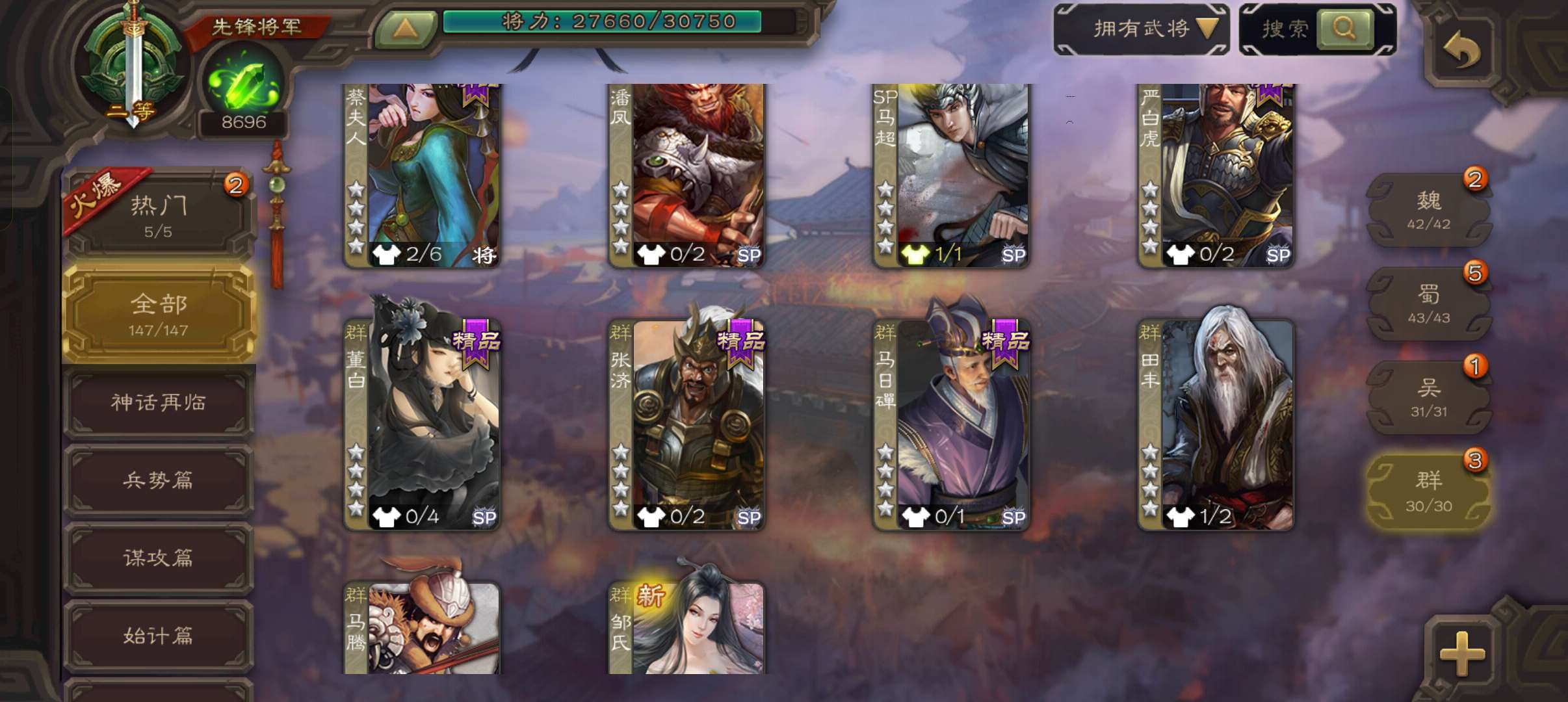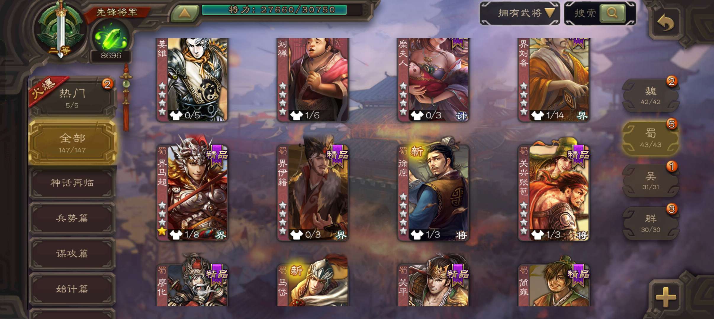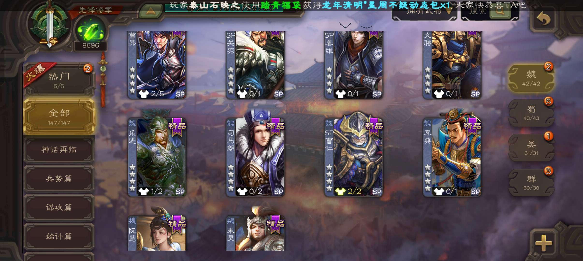 狗托先锋,74宝珠8万羽毛8600将魂,神吕布谯周沮授左慈4史诗,动态甘夫人桥公崔琰147将,5万豆