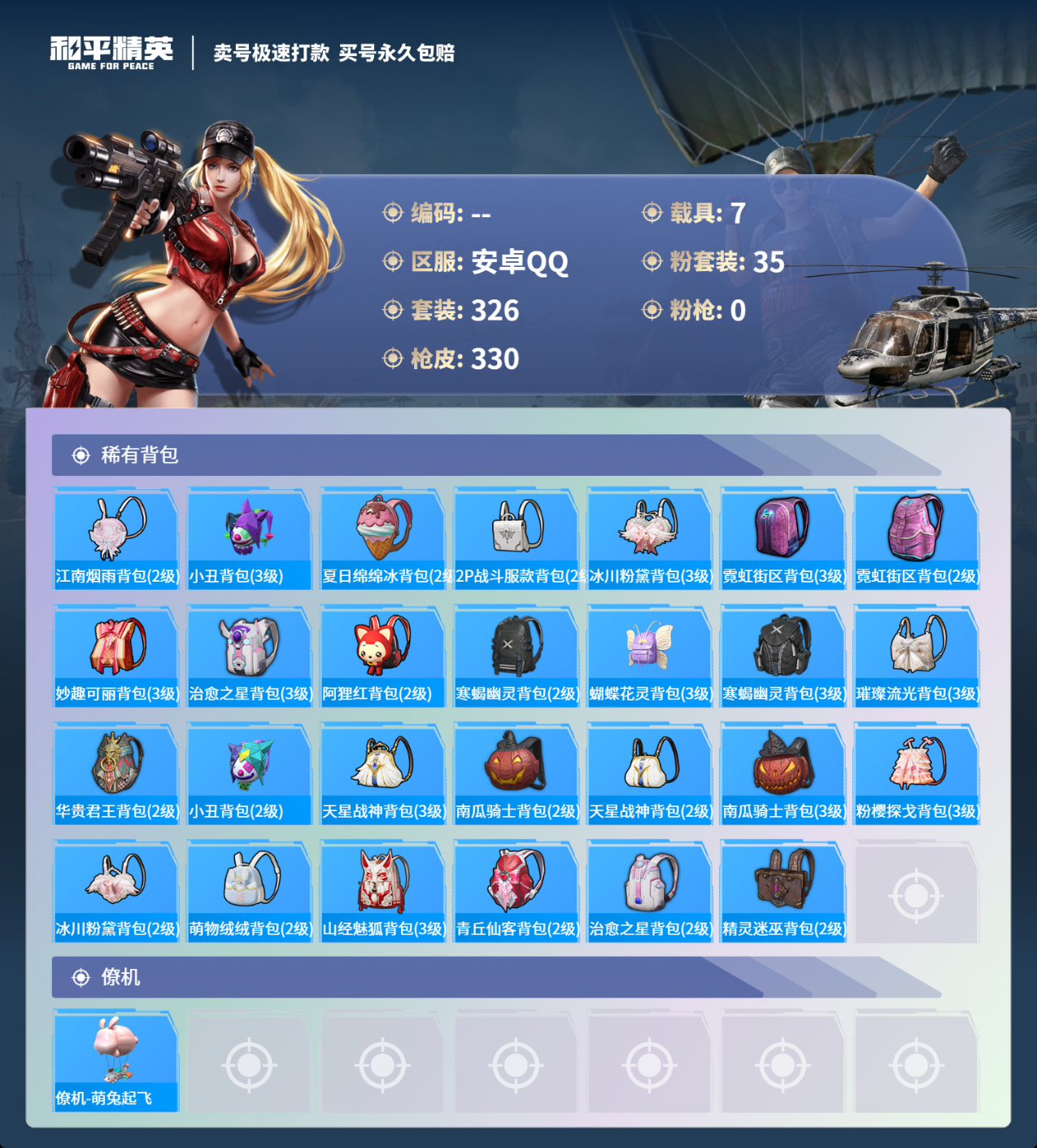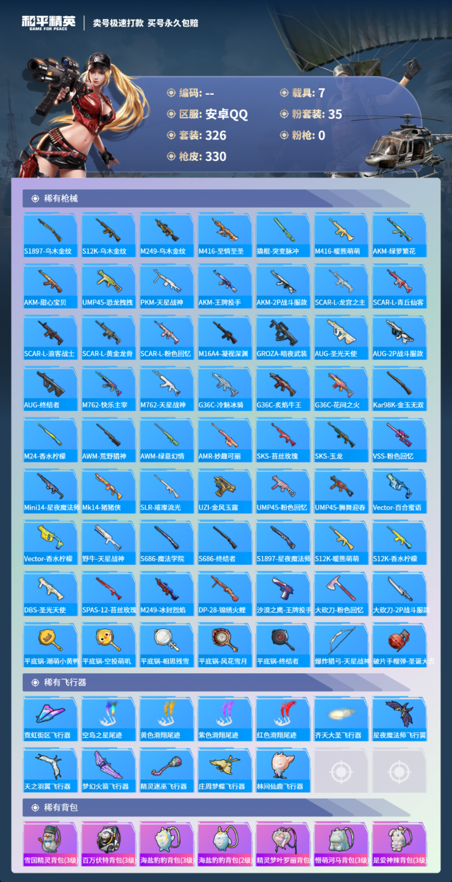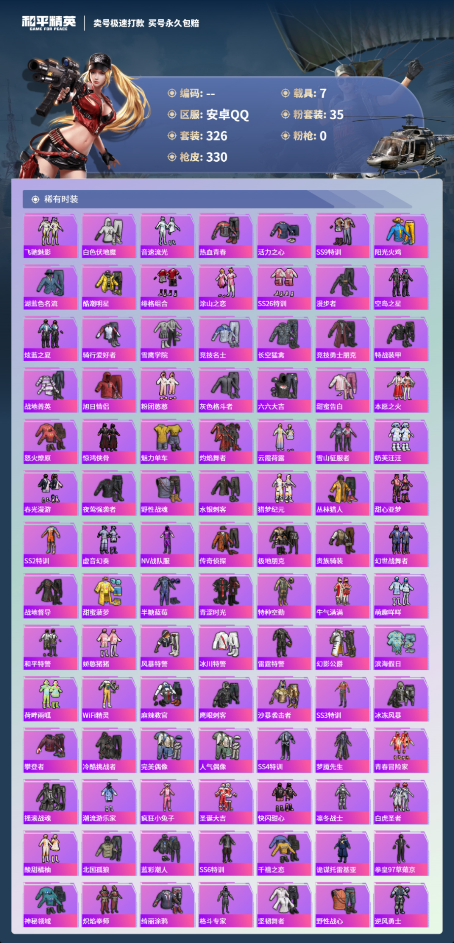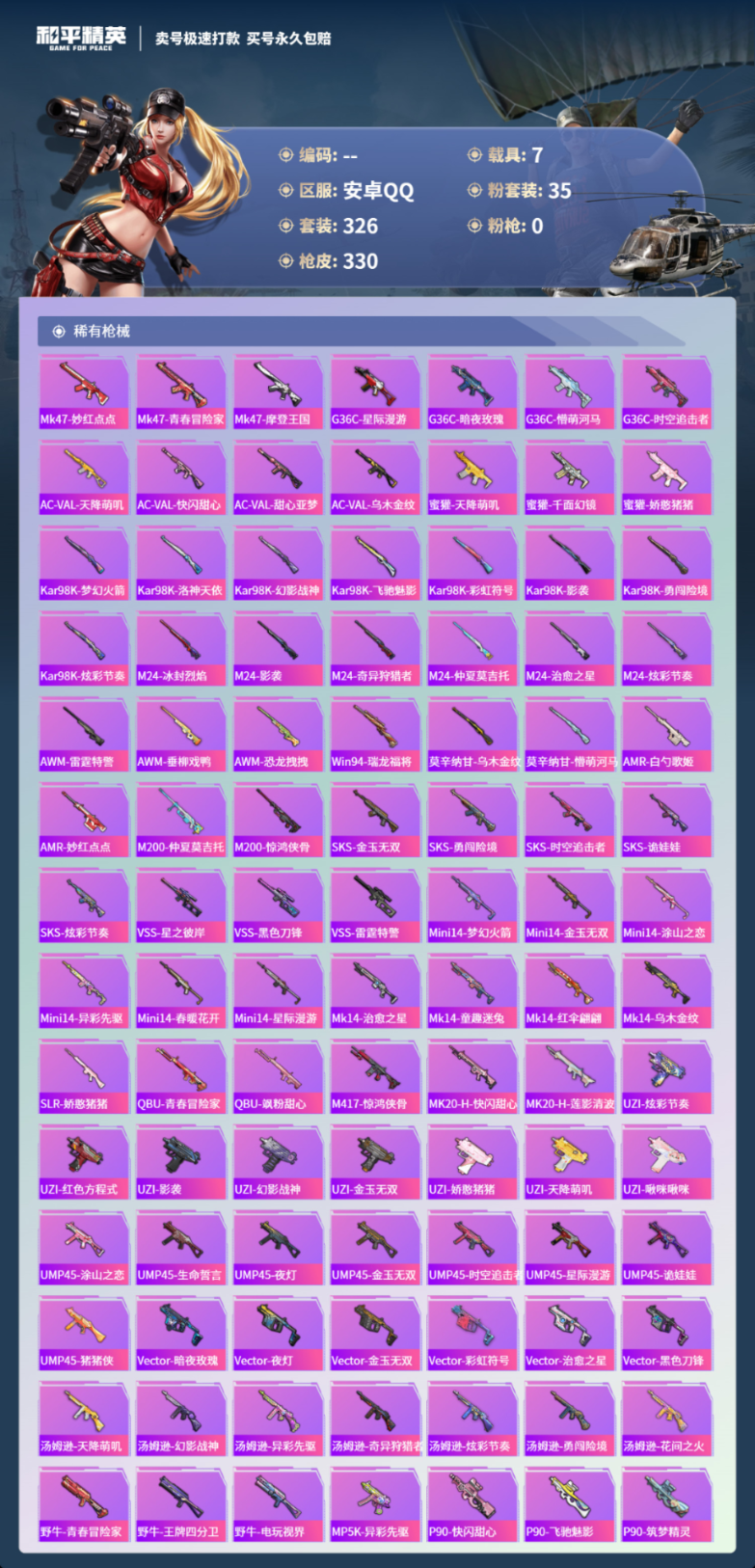 7载具-326套装-330枪皮-安卓 手Q-35粉装-14特效枪-7载具-热力值-18印记-326套装-330枪皮