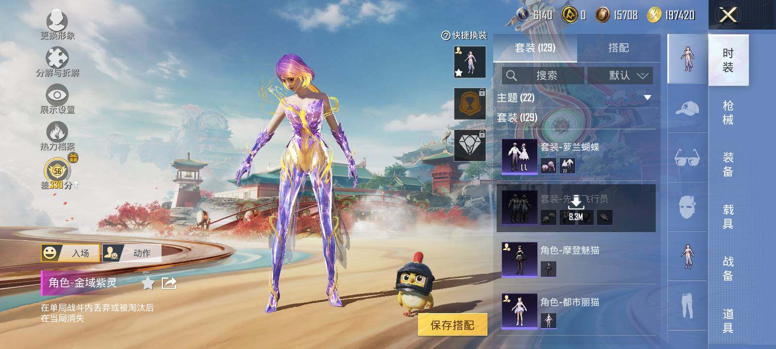 【HP4327】129套装/枪械2/装备221/载具1/战备128/王牌印记9/热力值49197/五级Kar98K-巳巳如意/七级DP-28-千金淑猫/套装-奇异狩猎者/套装-粉红小猪/角色-金域紫灵/粉装-未来领航者/粉装-桃粉嫣然/宝马M4(圣保罗黄)/Kar98K-巳巳如意/DP-28-千金淑猫/炫彩糖果飞行器/祥瑞起舞飞行器/沙丘之主天马/脆鲨七海飞行器/圣域金龙飞行器/伏魔团降落伞/萌酷奶龙降落伞/创世·救赎降落伞/时空协奏降落伞/千金淑猫降落伞/临安公主降落伞/赛博古神降落伞/圣域龙