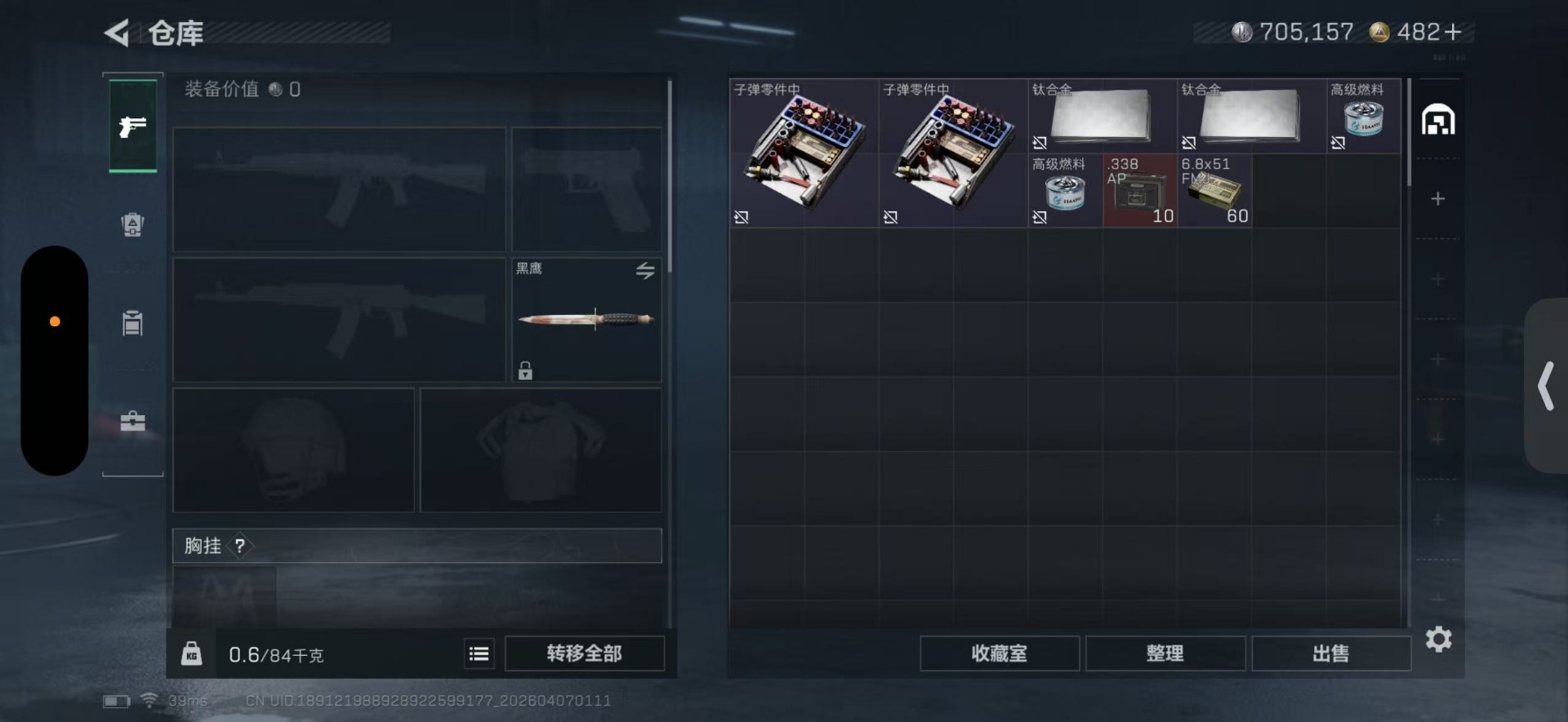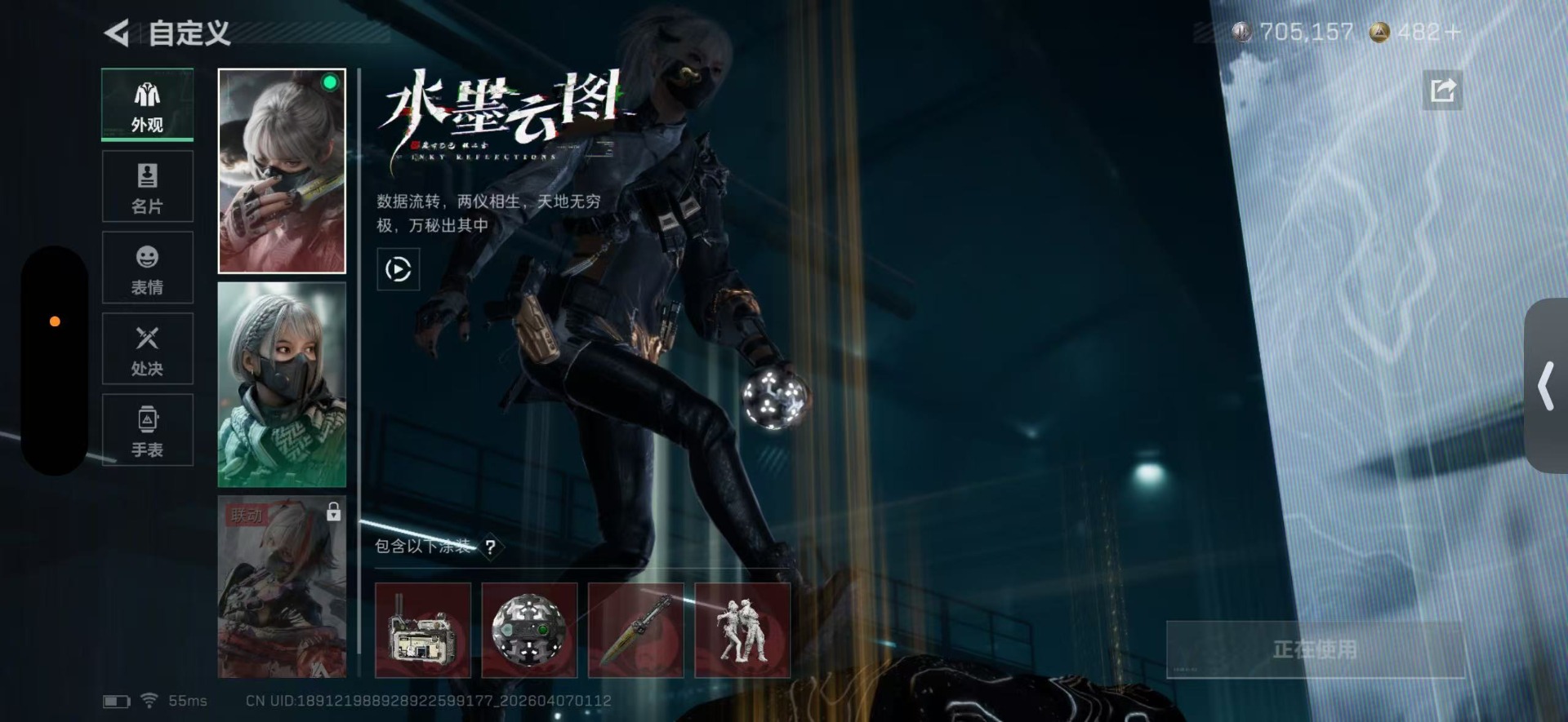 总资产:51.5M 2干员外观 1近战传说 15传说枪械 哈夫币:705.15