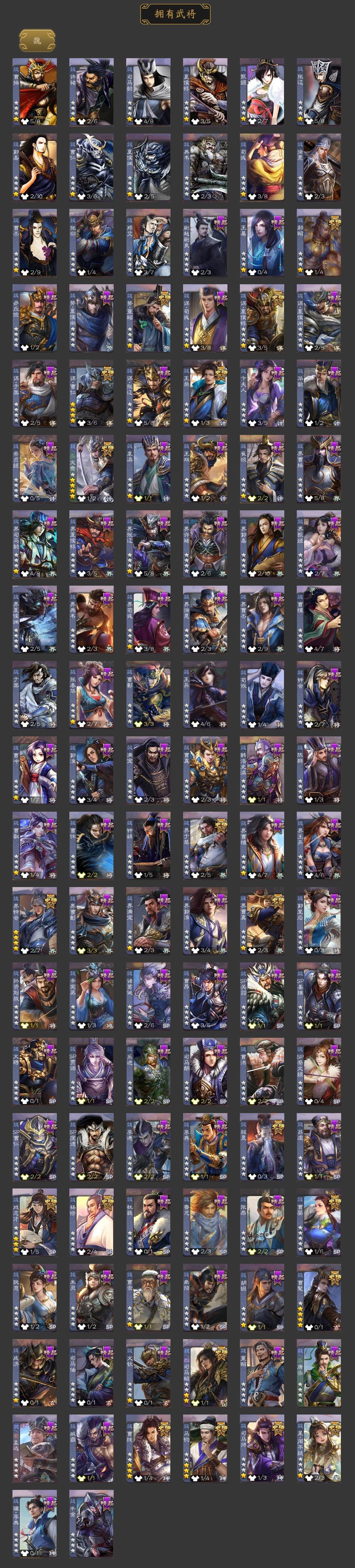 神曹操,神吕布,神赵云,神司马懿,神陆逊,神刘备,神甘宁,神张辽,神太史慈,神孙策,神荀彧,神华佗,神鲁肃,曹髦,星周不疑,谋曹仁,王粲,杨修,司马师,马钧,界钟