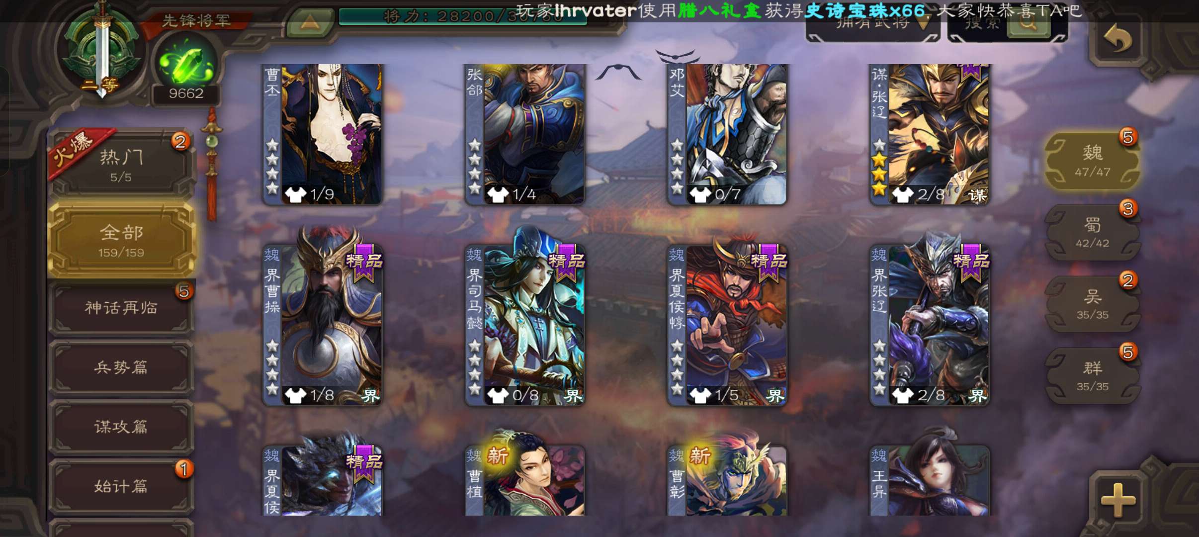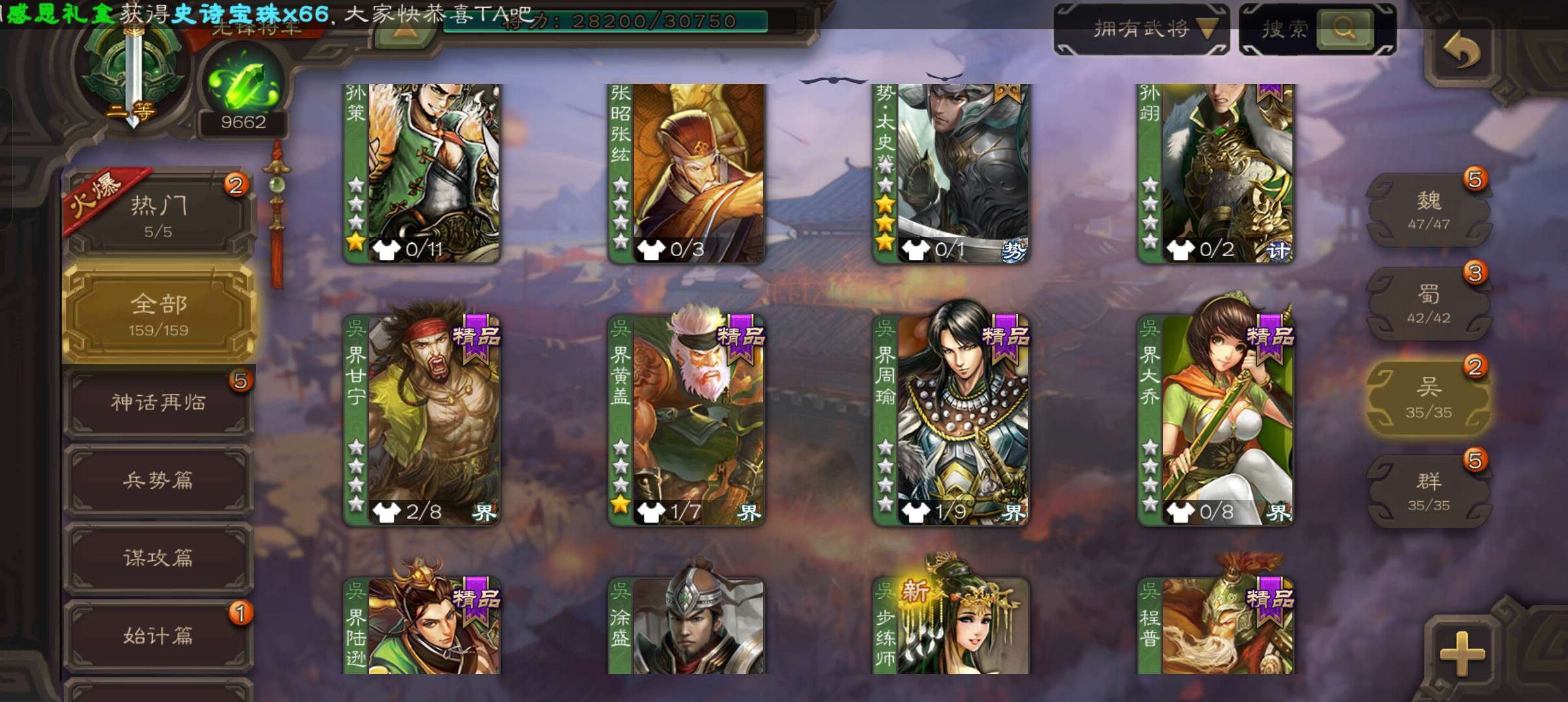9600将魂8万羽毛,势太史慈玉龙界朱然双史诗先锋,天工谋张辽,甘夫人谋卢植159将,6.5万豆