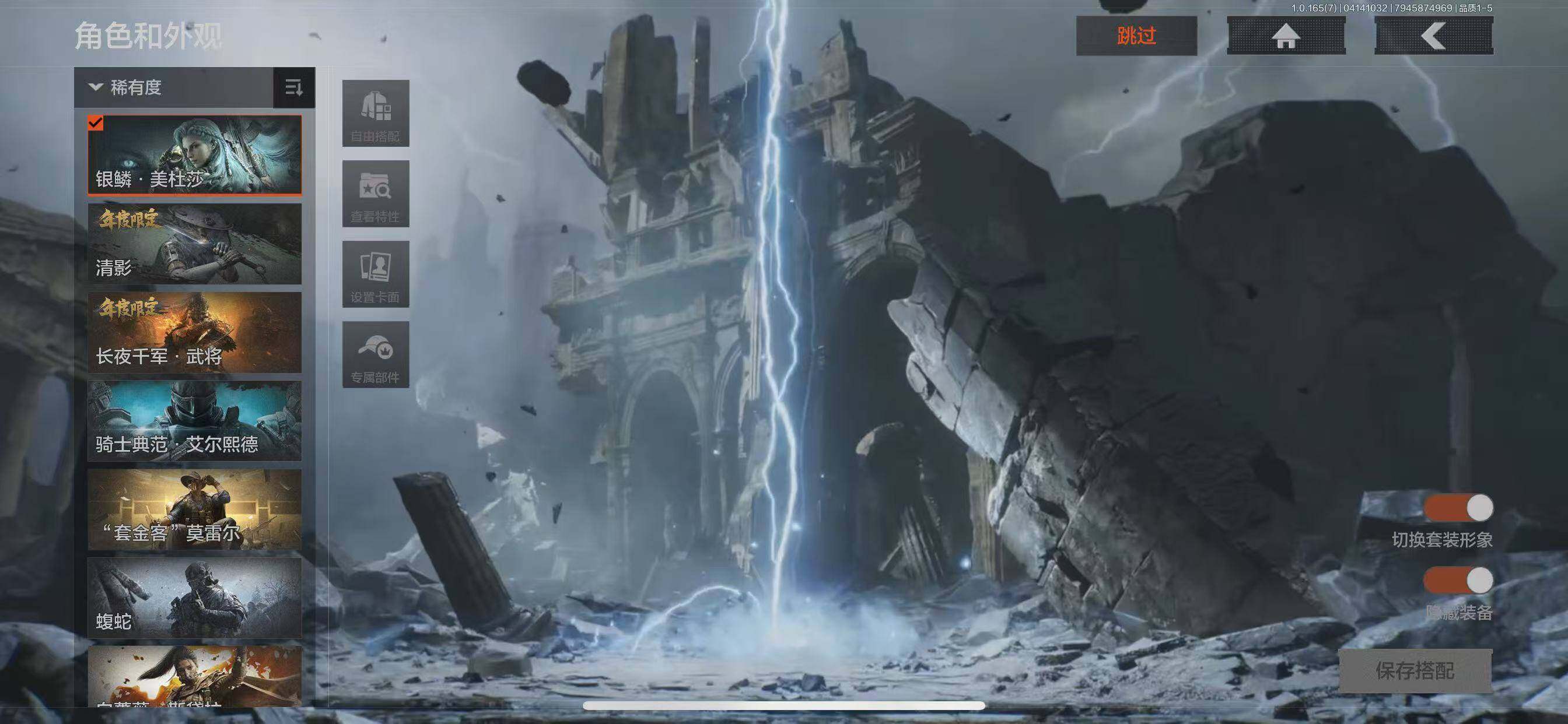 金衣:套金客莫雷尔,蝮蛇,白蔷薇斯黛拉,冥河,苍白隐者伪装服,深潜行者II,银鳞·美杜莎,清影,长夜干军·武将,骑士典范·艾尔熙德