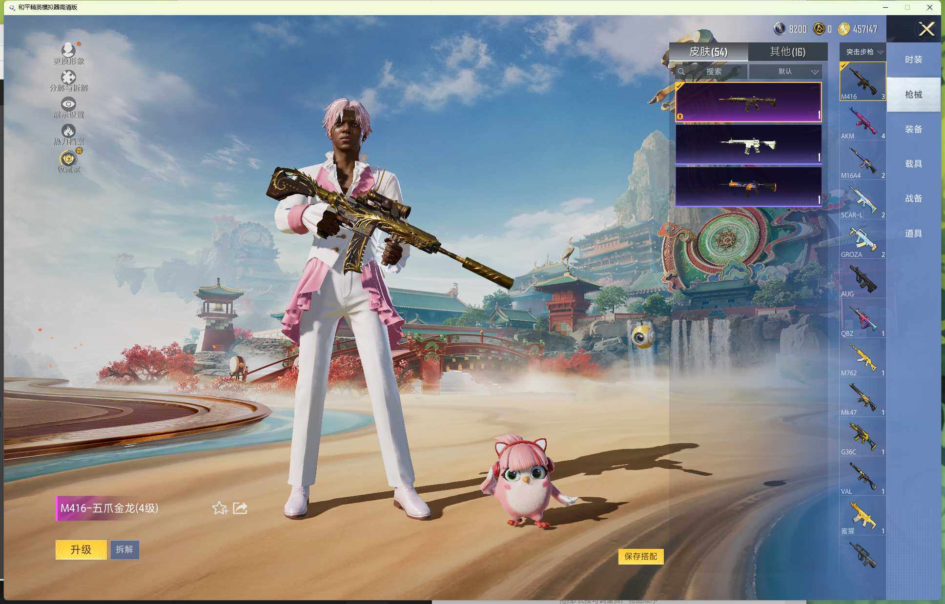 【A10779】安卓 【小号 M416-五爪金龙(四级)/套装-龟仙人】手Q-0粉装-1特效枪-0载具-0粉色飞行器-17903热力值-8王牌印记-54套装-54枪皮